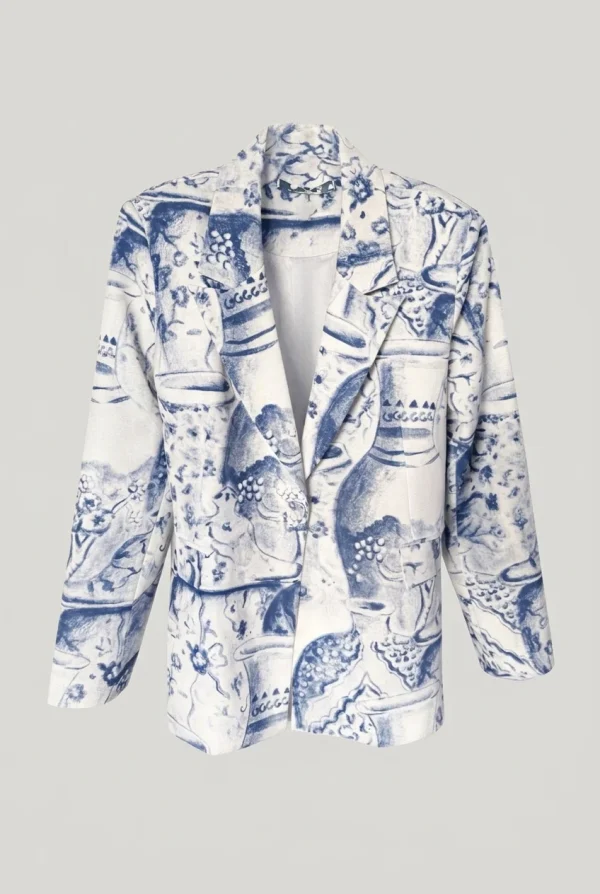 Το Amalfi Blazer της Innocent είναι ένα ιδιαίτερο σακάκι με μπλε print πάνω σε λευκή βάση που προσθέτει χαρακτήρα και σύγχρονη αισθητική στο look. Η καθαρή γραμμή, ο γιακάς με πέτο και η relaxed εφαρμογή δημιουργούν μια κομψή αλλά μοντέρνα σιλουέτα. Φοριέται εύκολα τόσο μόνο του όσο και σε συνδυασμό με το Amalfi Pants για ένα ολοκληρωμένο statement σύνολο.