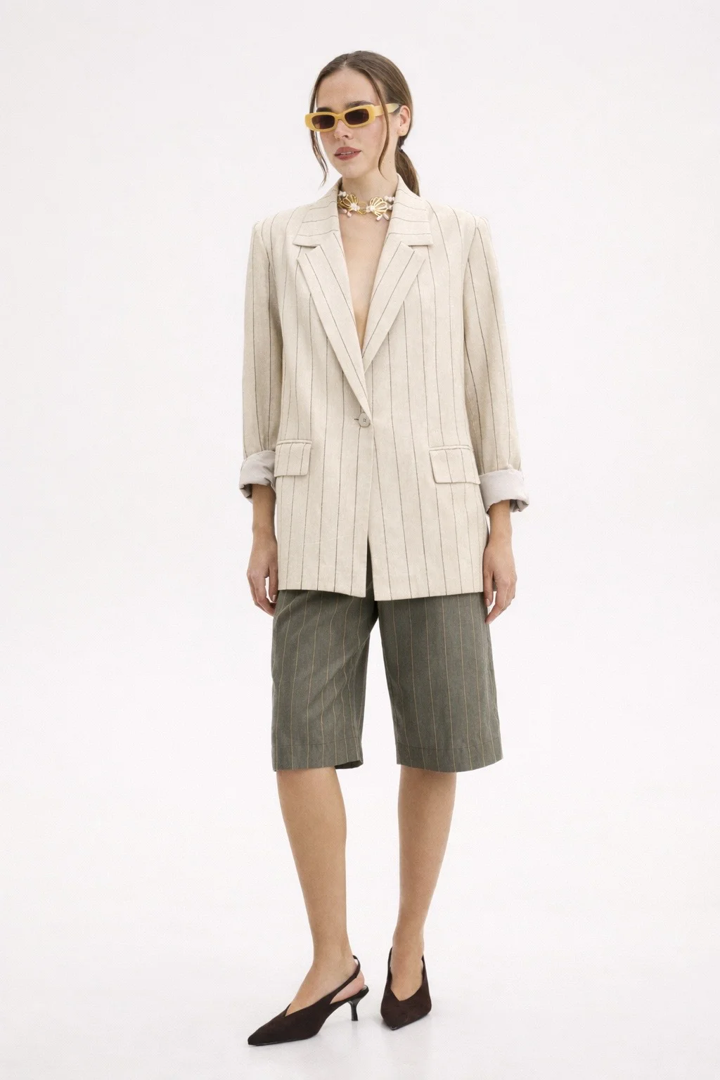 Συνδύασέ το με το αντίστοιχο παντελόνι για ολοκληρωμένο σύνολο ή φόρεσέ το πάνω από basic top και denim για πιο σύγχρονο layering.