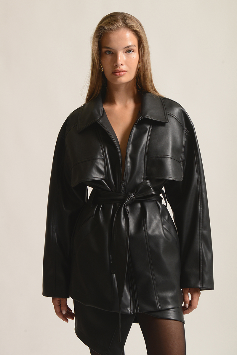 Δερμάτινο jacket της Twenty 29 με ζώνη, σε μαύρο χρώμα που συνδυάζει rock style και σύγχρονη κομψότητα. Iδανικό για πολυδιάστατο στυλ με δυναμικό χαρακτήρα.