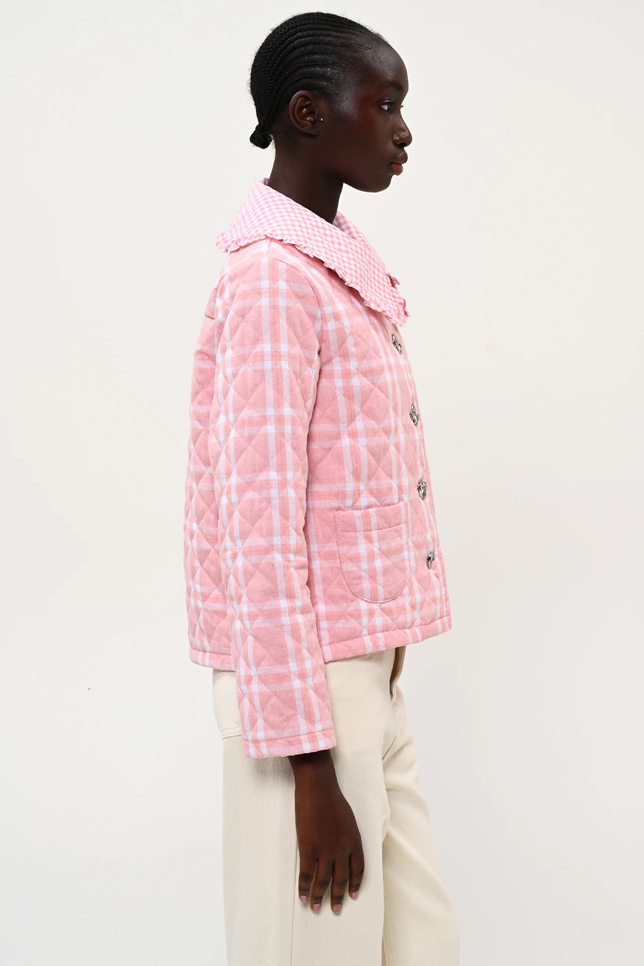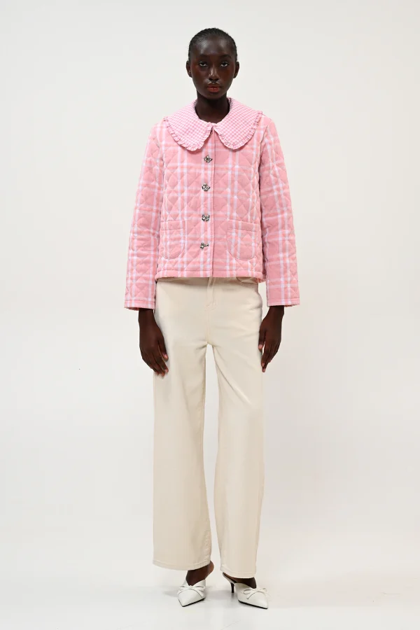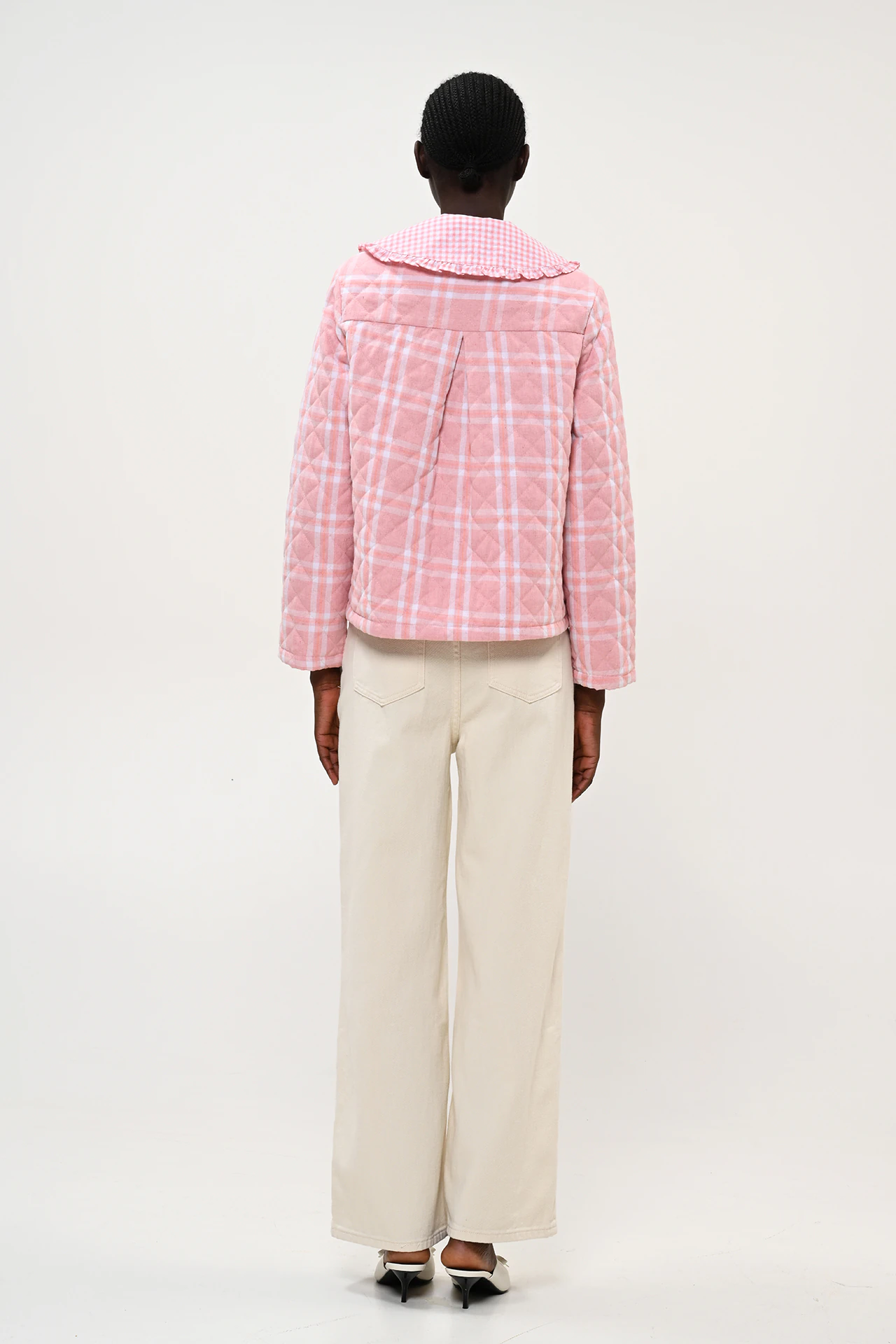 Το Colette Check Jacket – Pink της Boom αποτυπώνει μια σύγχρονη, ρομαντική αισθητική με διακριτικό καρό μοτίβο σε απαλούς τόνους ροζ και λευκού. Η quilted υφή του προσθέτει δομή και κομψότητα, ενώ η καθαρή γραμμή του το καθιστά ιδανικό για καθημερινά αλλά και πιο elevated looks.