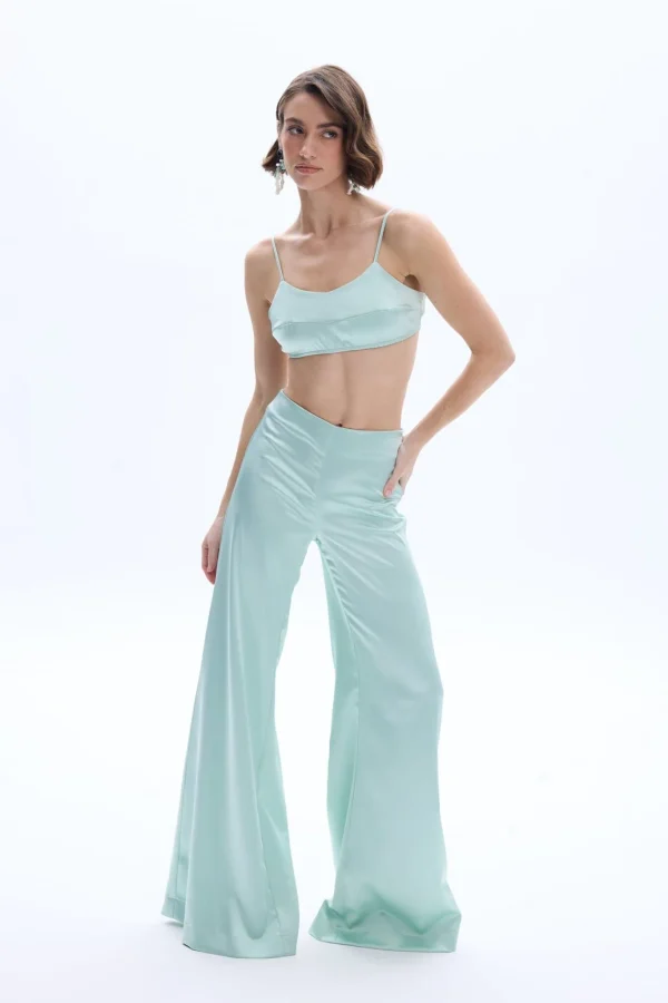 Το Courtney Pants από την Be A Bee σε mint απόχρωση αποτυπώνει μια σύγχρονη εκδοχή κομψότητας μέσα από καθαρές γραμμές και ρευστή κίνηση. Η σατέν υφή με διακριτική γυαλάδα προσφέρει ένα refined αποτέλεσμα, ενώ η ψηλόμεση γραμμή επιμηκύνει τη σιλουέτα.