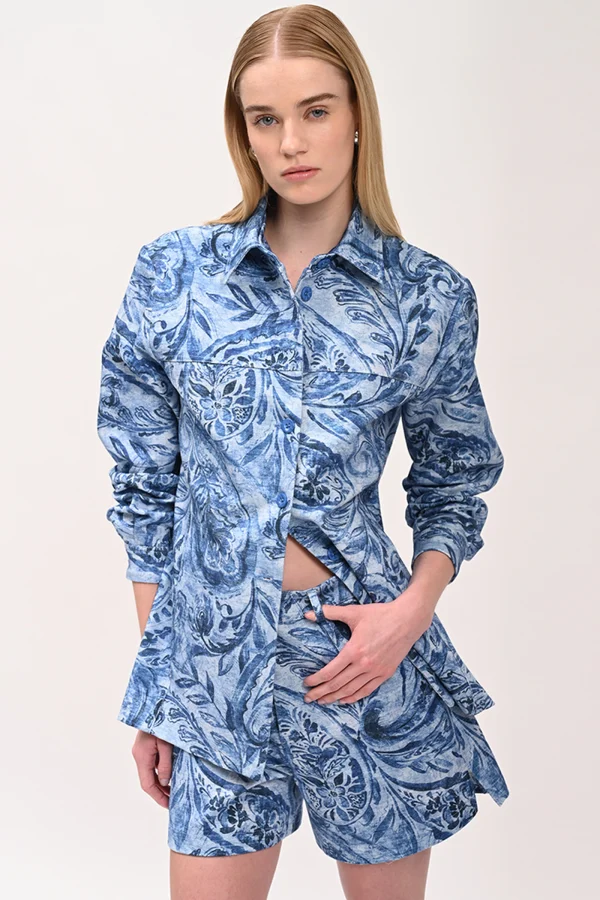 Jacket σε denim ύφος με ιδιαίτερο print που αναδεικνύει ένα σύγχρονο και statement χαρακτήρα.