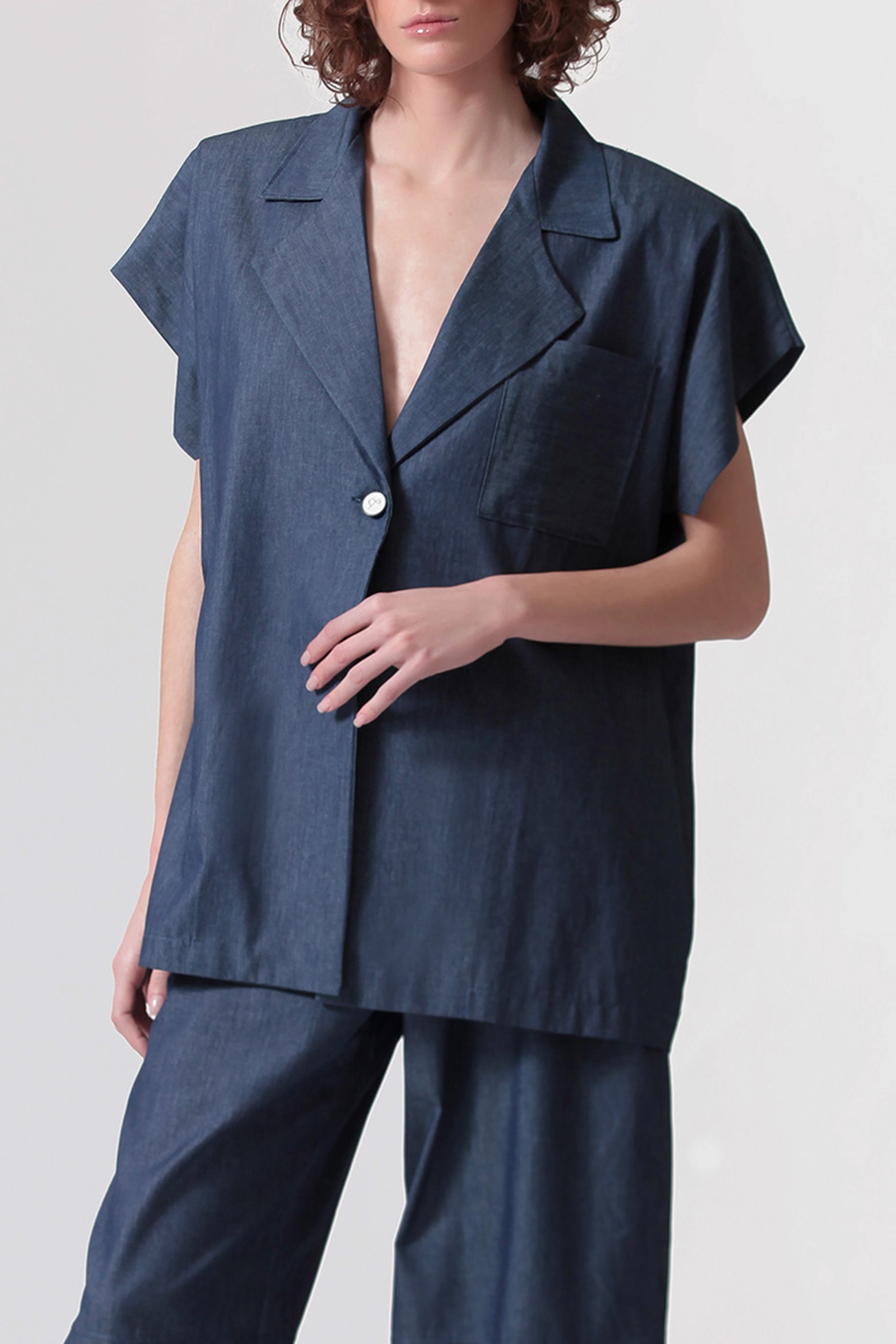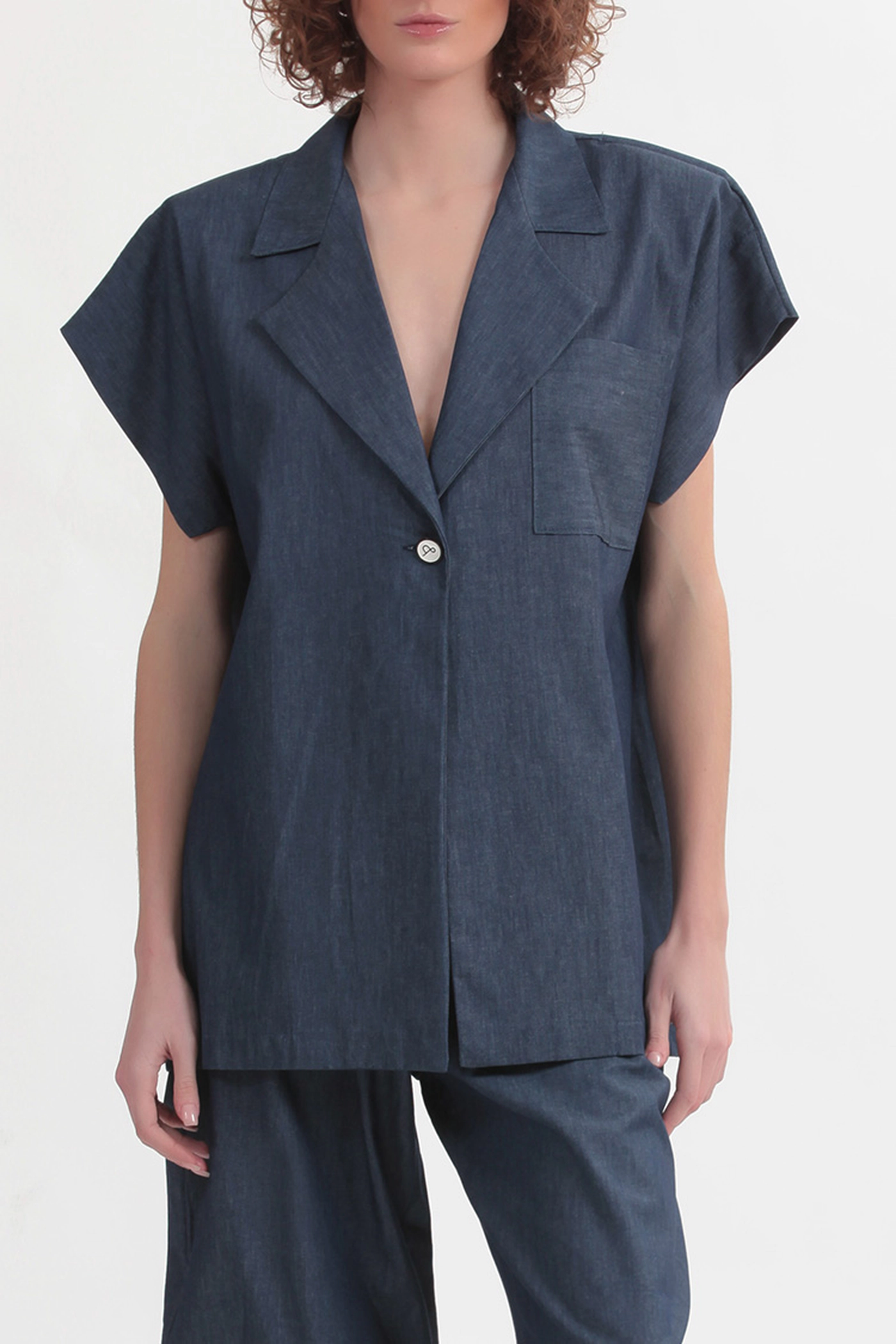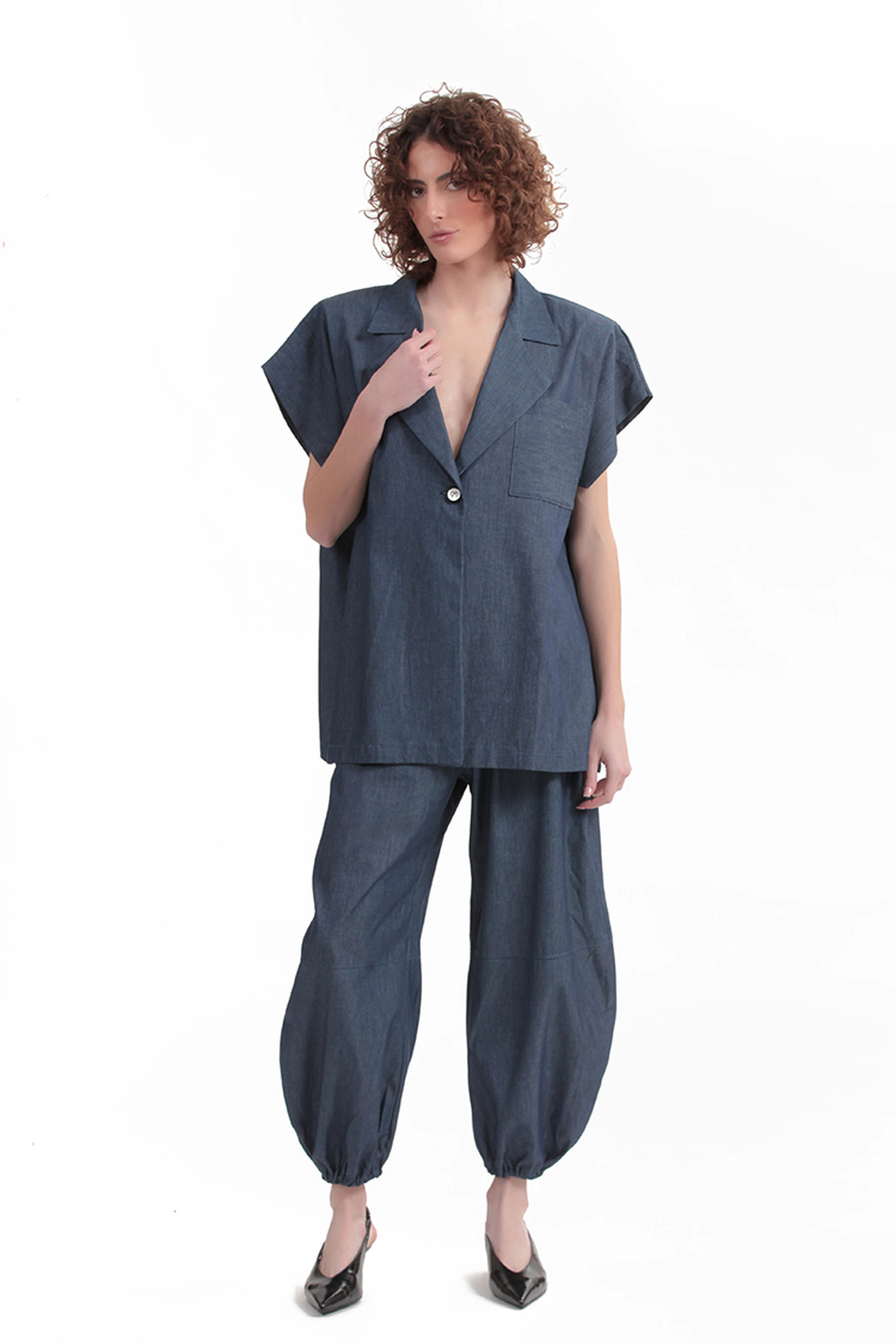 Το Elvis Denim Blazer από τη Two & A Half ισορροπεί ανάμεσα στο tailoring και τη σύγχρονη χαλαρότητα. Η oversized γραμμή στους ώμους δημιουργεί μια δυνατή, αρχιτεκτονική σιλουέτα, ενώ τα κοντά μανίκια προσδίδουν πιο effortless χαρακτήρα. Το denim ύφος δίνει μια μοντέρνα προσέγγιση σε ένα διαχρονικό κομμάτι, κρατώντας το καθαρό και σύγχρονο.