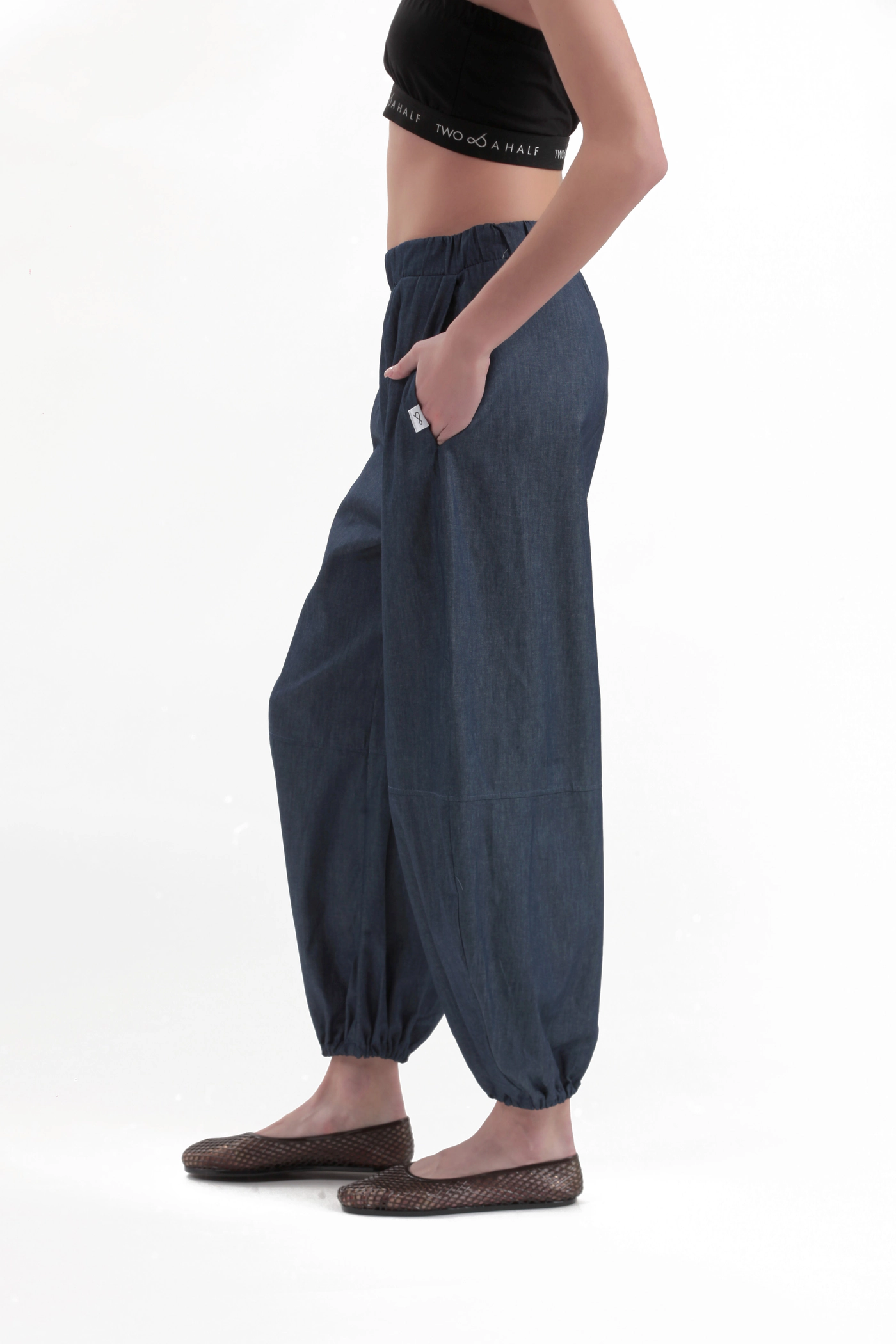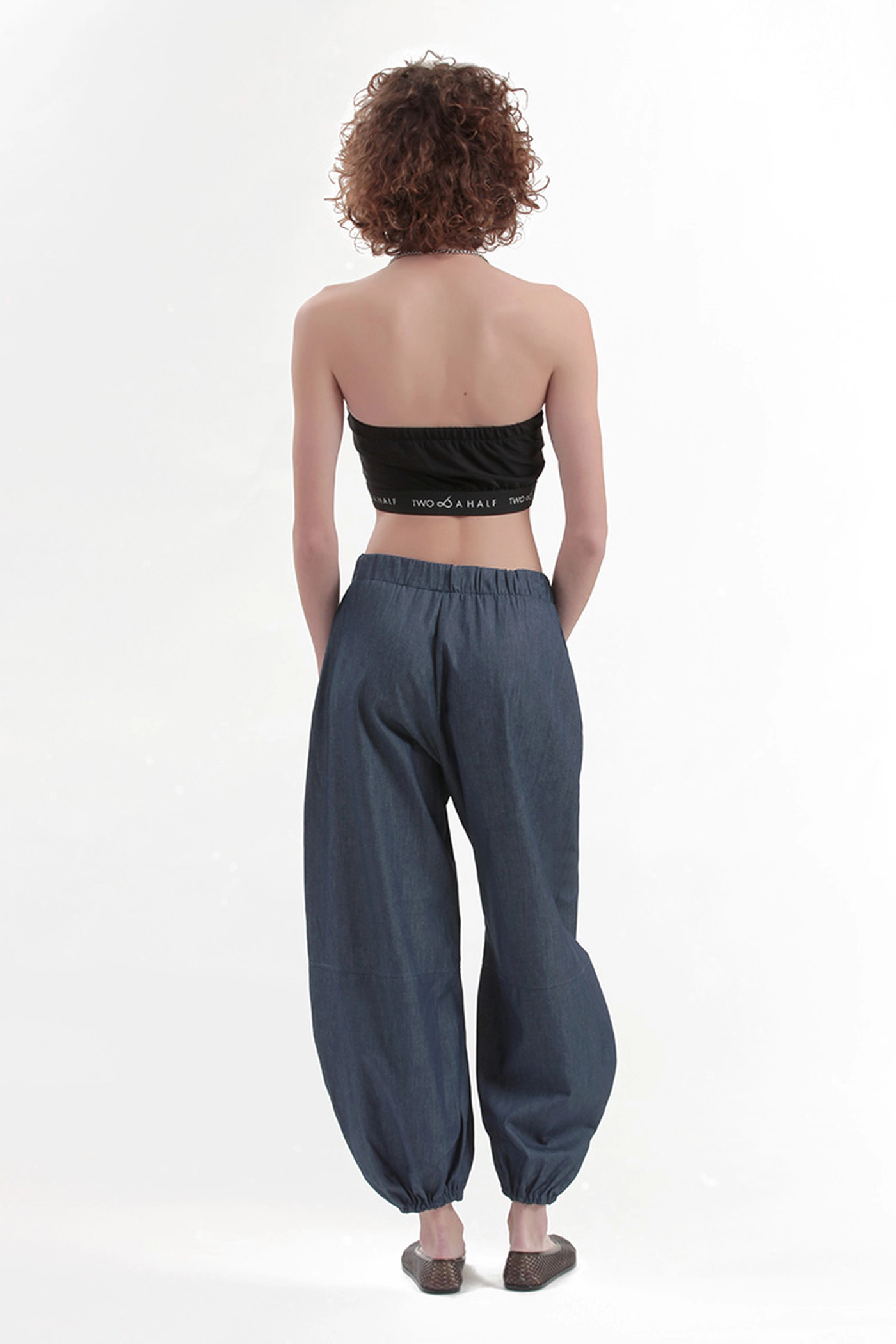 Το Elvis Denim Trousers από τη Two & A Half επαναπροσδιορίζει το casual dressing μέσα από μια sculptural balloon γραμμή. Ο όγκος διαμορφώνεται με φυσικό τρόπο χάρη στο elastic τελείωμα, δημιουργώντας μια σύγχρονη σιλουέτα με χαρακτήρα. Το denim ύφος προσθέτει relaxed διάθεση, ισορροπώντας ιδανικά με την αρχιτεκτονική καθαρότητα του σχεδίου.