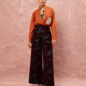 Wide Leg Denim Velvet Pants Burgundy