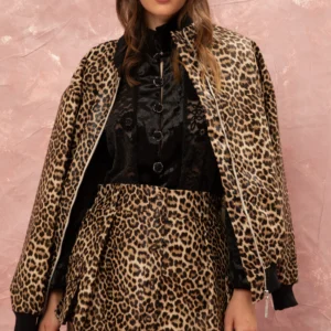 Leopard Vegan Leather Bomber Jacket