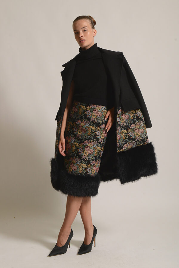 Εντυπωσιακό παλτό από την Twenty 29, με floral υφή και μαύρη γούνα στο τελείωμα. Συνδυάζει κομψότητα και ιδιαίτερο χαρακτήρα, αποτελώντας μια εκλεπτυσμένη επιλογή για ξεχωριστές εμφανίσεις.