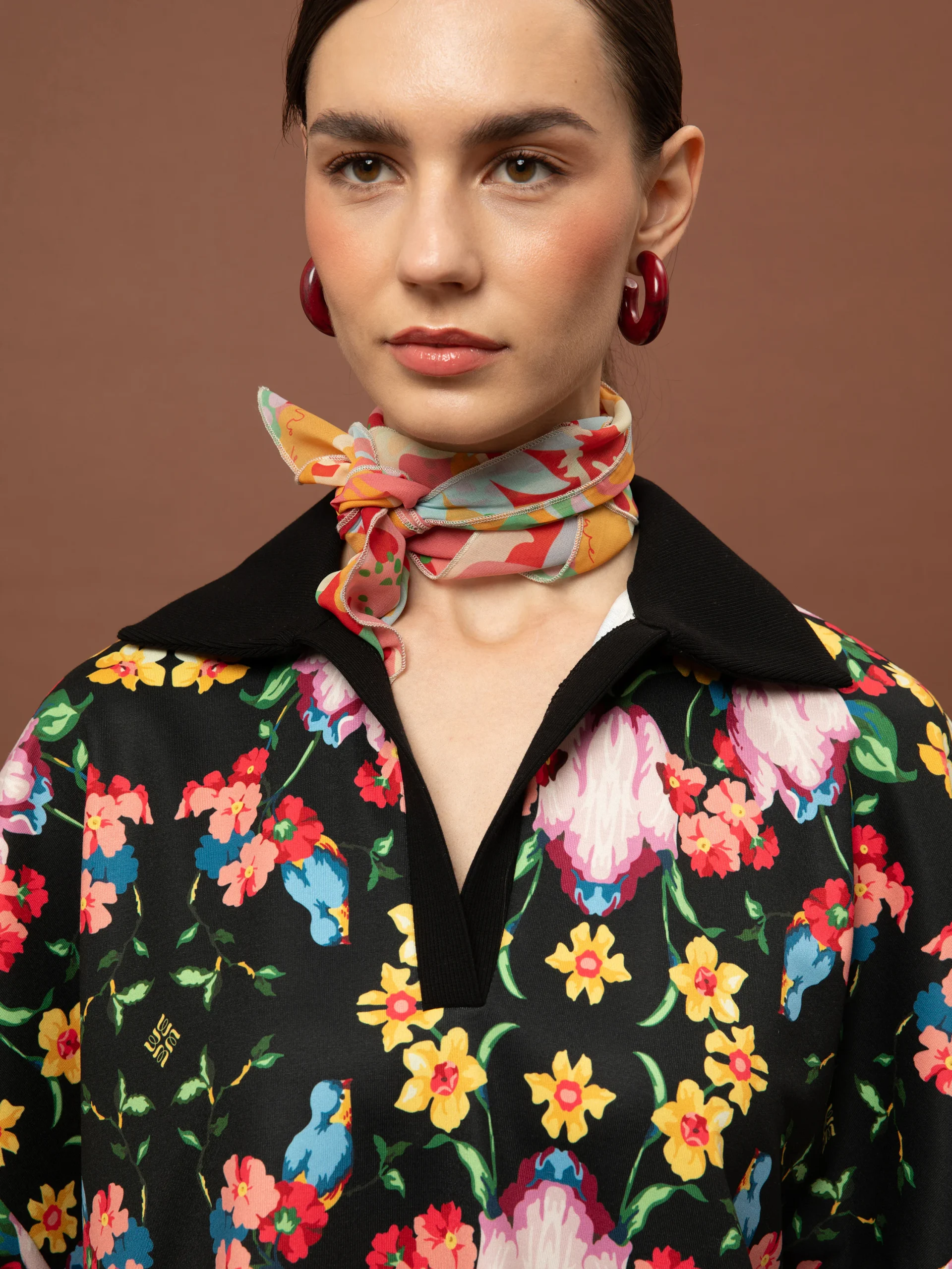 Το Futter Polo Top – Blossoms Black της We Are είναι ένα ιδιαίτερο statement κομμάτι που συνδυάζει sporty αισθητική με έντονο καλλιτεχνικό print. Το χαρακτηριστικό μοτίβο Blossoms Black με λουλούδια και χρώματα πάνω σε μαύρη βάση δημιουργεί ένα εντυπωσιακό αποτέλεσμα, ενώ ο polo γιακάς και η V λαιμόκοψη προσθέτουν μια μοντέρνα relaxed tailoring πινελιά.