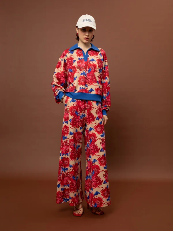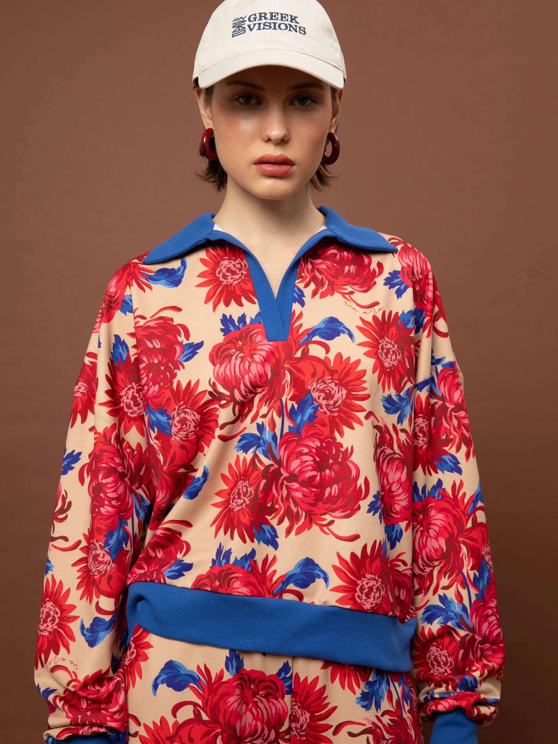 Το Futter Polo Top – Chrysanthema Beige της We Are είναι ένα ιδιαίτερο statement κομμάτι που συνδυάζει sporty αισθητική με έντονο καλλιτεχνικό print. Το χαρακτηριστικό μοτίβο Chrysanthema Beige με λουλούδια και χρώματα πάνω σε μπεζ βάση δημιουργεί ένα εντυπωσιακό αποτέλεσμα, ενώ ο polo γιακάς και η V λαιμόκοψη προσθέτουν μια μοντέρνα relaxed tailoring πινελιά.