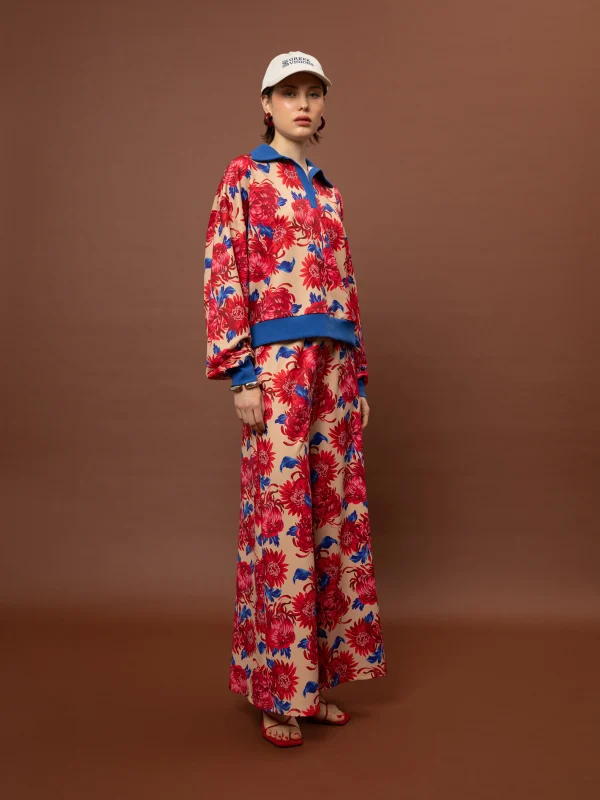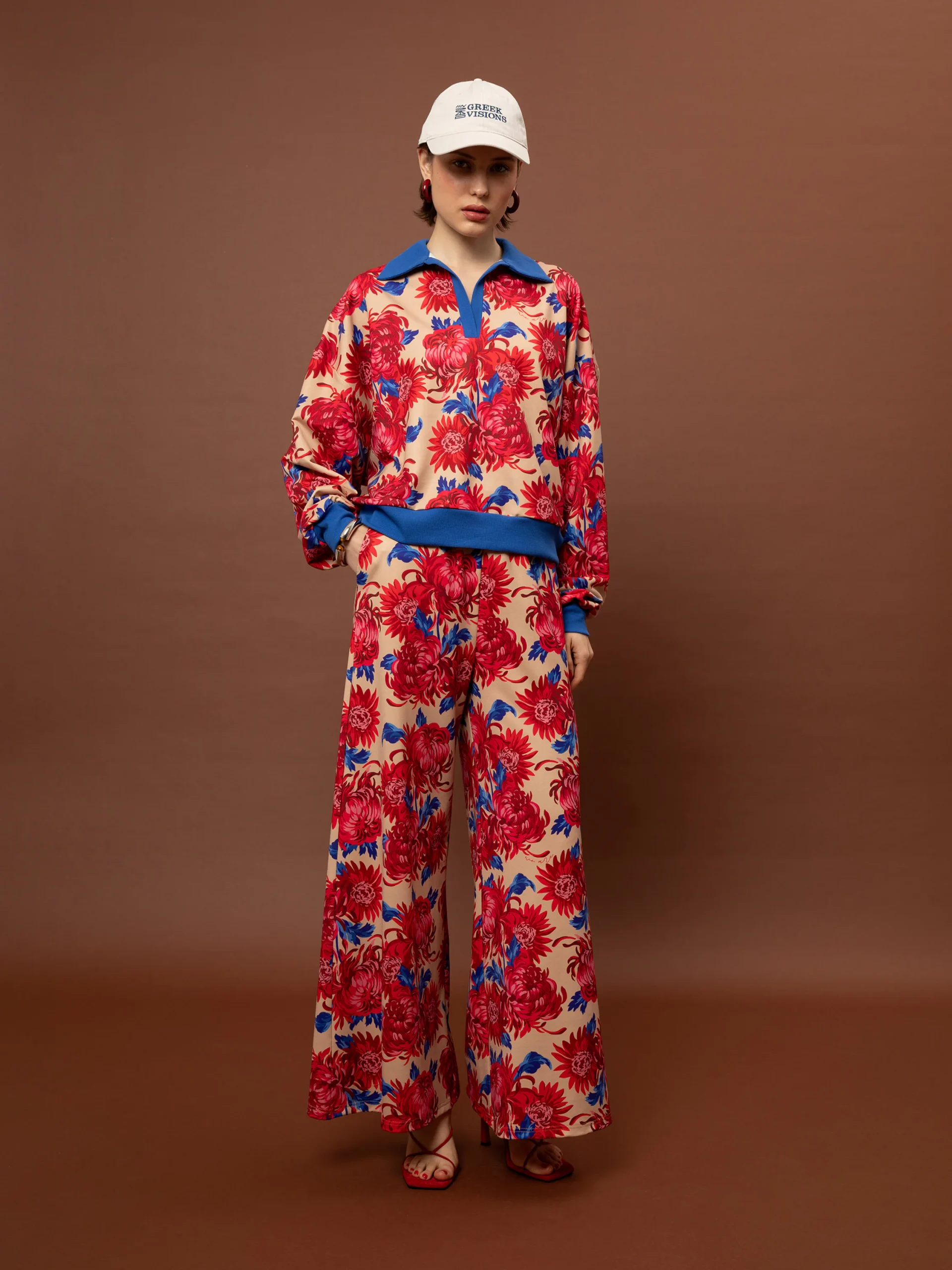 Το Futter Track Pants – Chrysanthema Beige της We Are συνδυάζει άνεση και έντονη αισθητική μέσα από ένα εντυπωσιακό floral μοτίβο σε μπεζ φόντο με κόκκινα και μπλε άνθη. Η καλοκαιρινή υφή φούτερ υφάσματος προσφέρει ελαφριά αίσθηση και άνετη εφαρμογή, ενώ η ψηλόμεση γραμμή και τα φαρδιά μπατζάκια δημιουργούν ένα σύγχρονο relaxed silhouette.