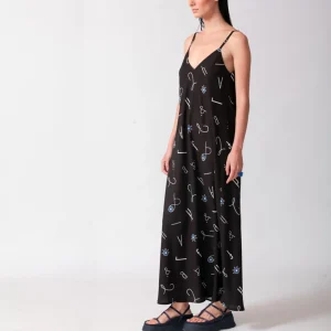 Maxi φόρεμα με άνοιγμα στη πλάτη, σε λευκό χρώμα με σχέδια, one size.