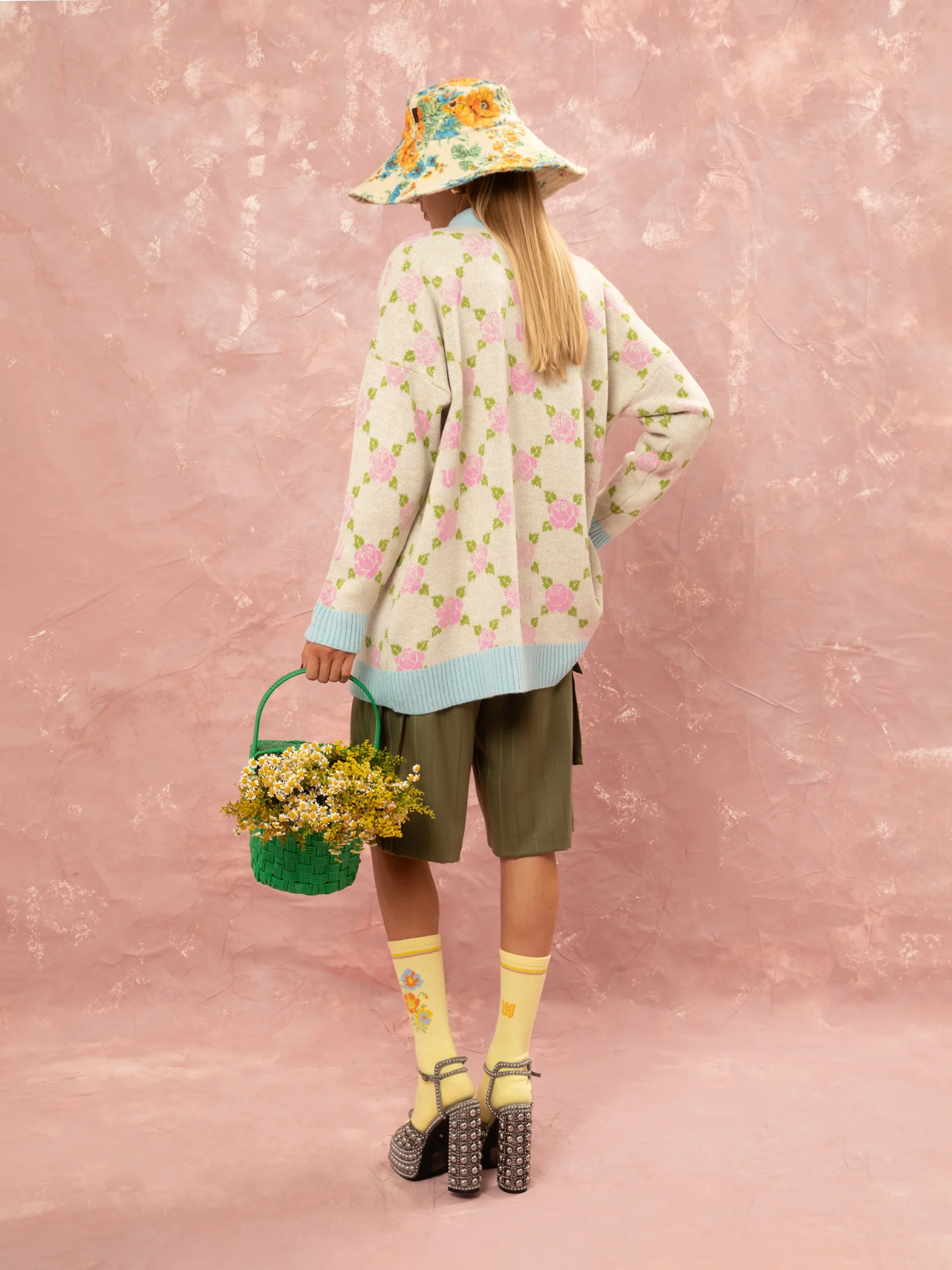 Jacquard Knit Cardigan Roses