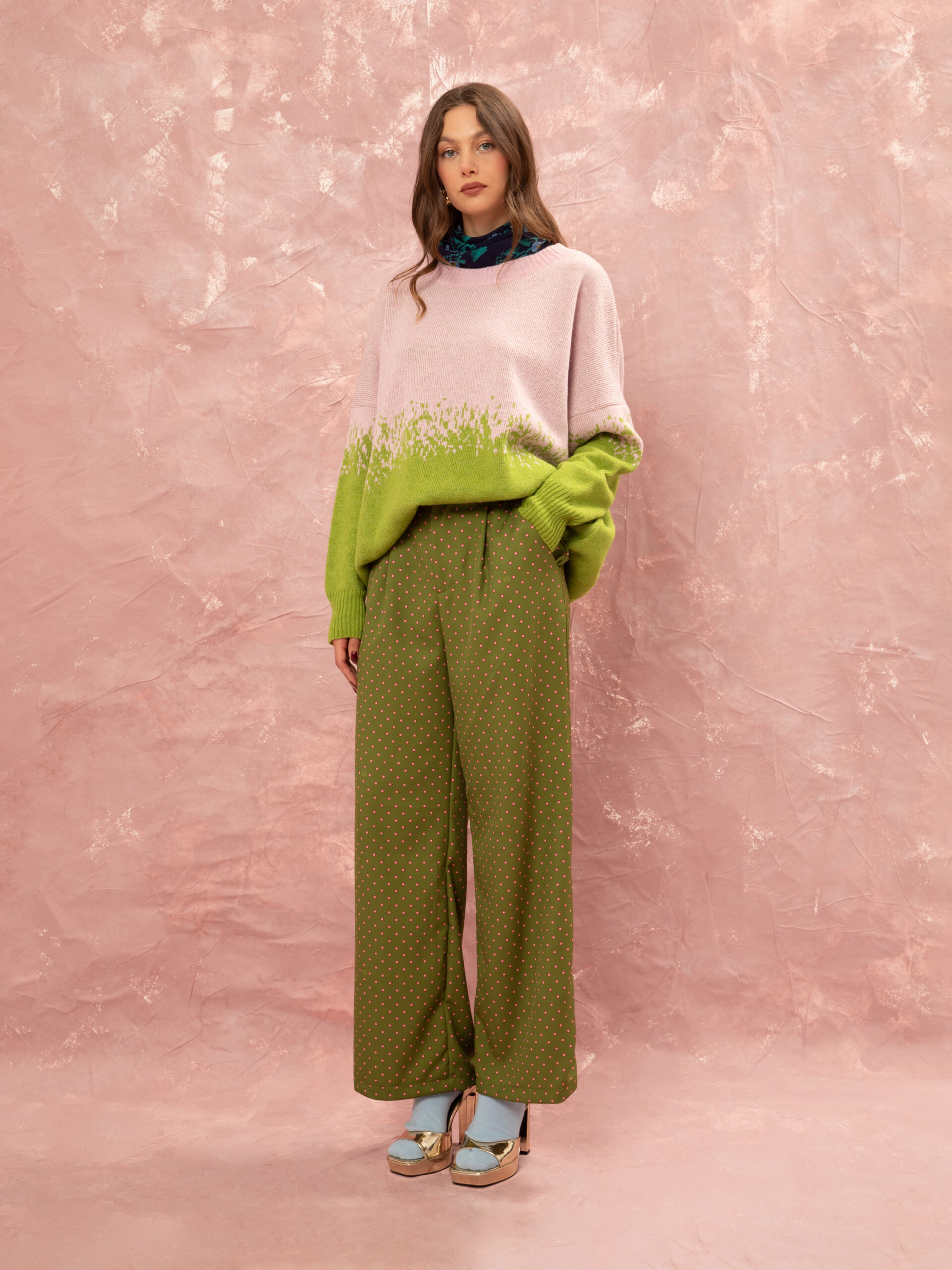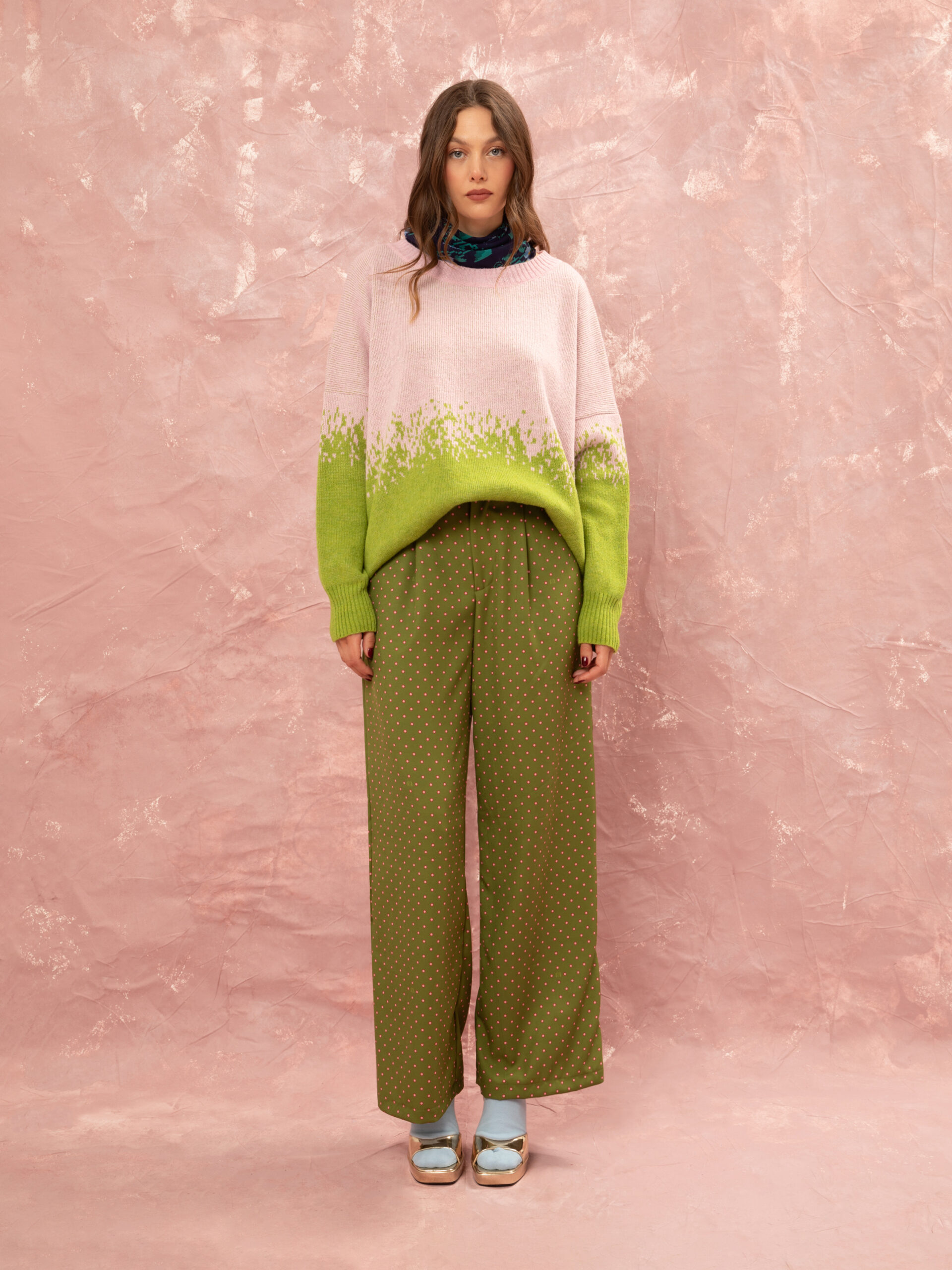 Πλεκτή jacquard μπλούζα από την We Are που ξεχωρίζει για το απαλό ombré εφέ στις αποχρώσεις του ροζ και του lime, καθώς και το jacquard μοτίβο. Με cozy σύνθεση και άνετη εφαρμογή, αποτελεί ιδανική επιλογή για καθημερινές εμφανίσεις, layered σύνολα και minimal-chic outfits. One size, με drop-shoulder γραμμή για χαλαρή, άνετη εφαρμογή.