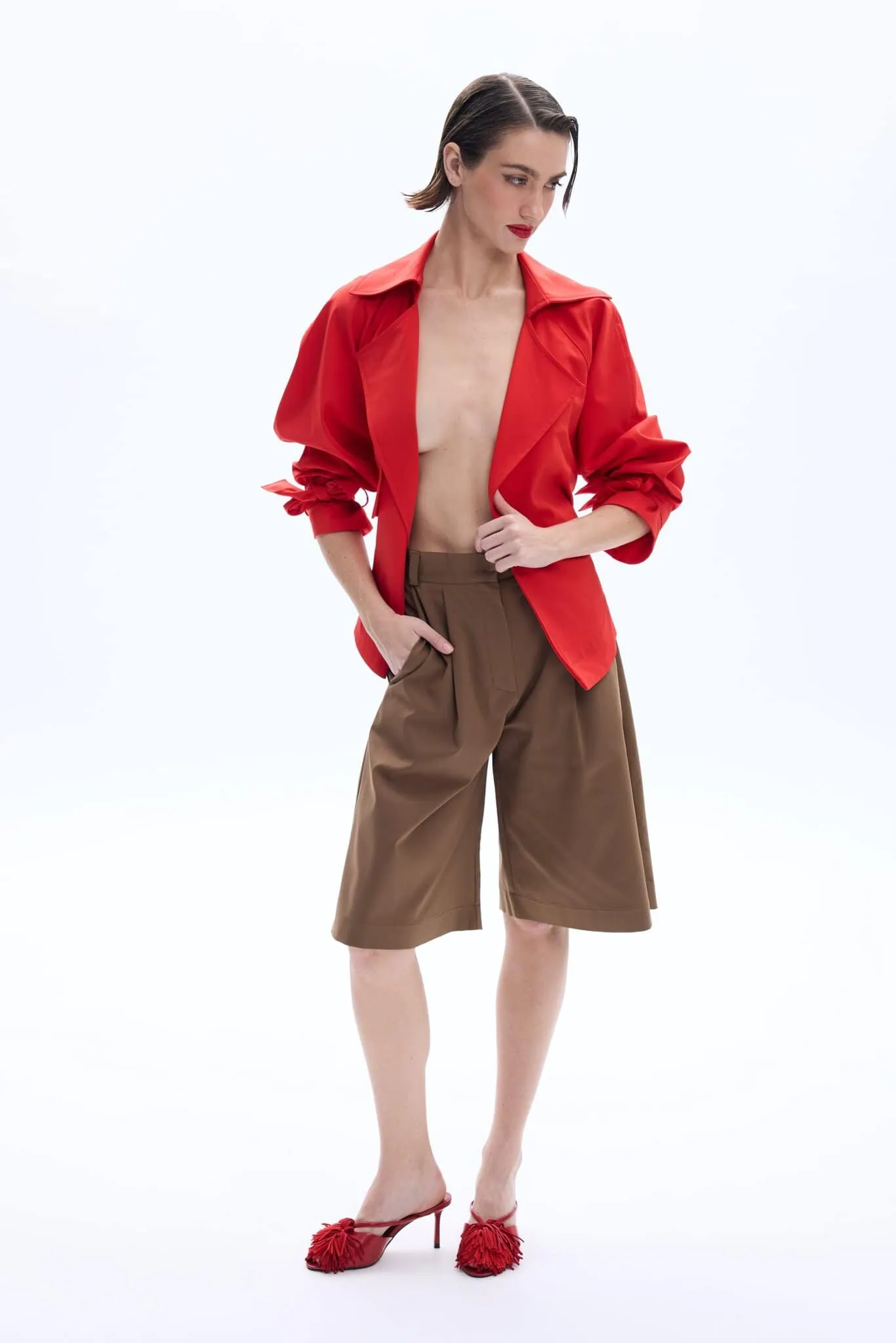 Το Lindsay Jacket από την Be A Bee σε έντονη κόκκινη απόχρωση αποτελεί μια bold προσέγγιση στο σύγχρονο tailoring. Με καθαρές γραμμές και relaxed εφαρμογή, συνδυάζει δυναμική αισθητική με effortless κομψότητα.