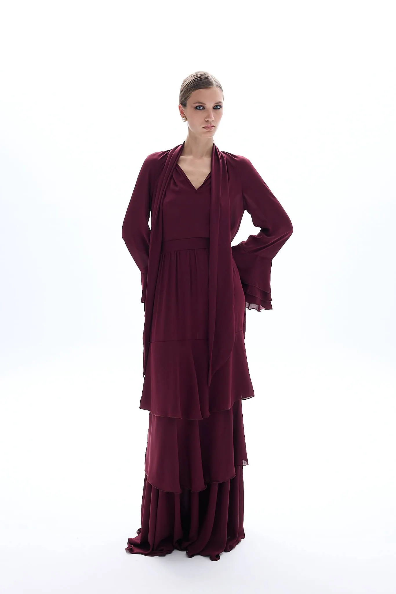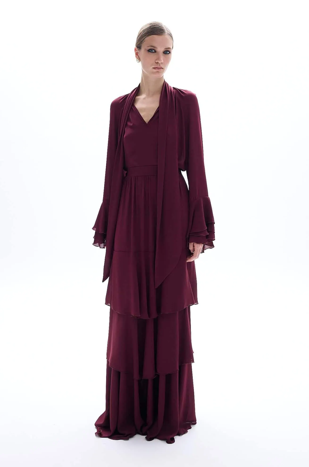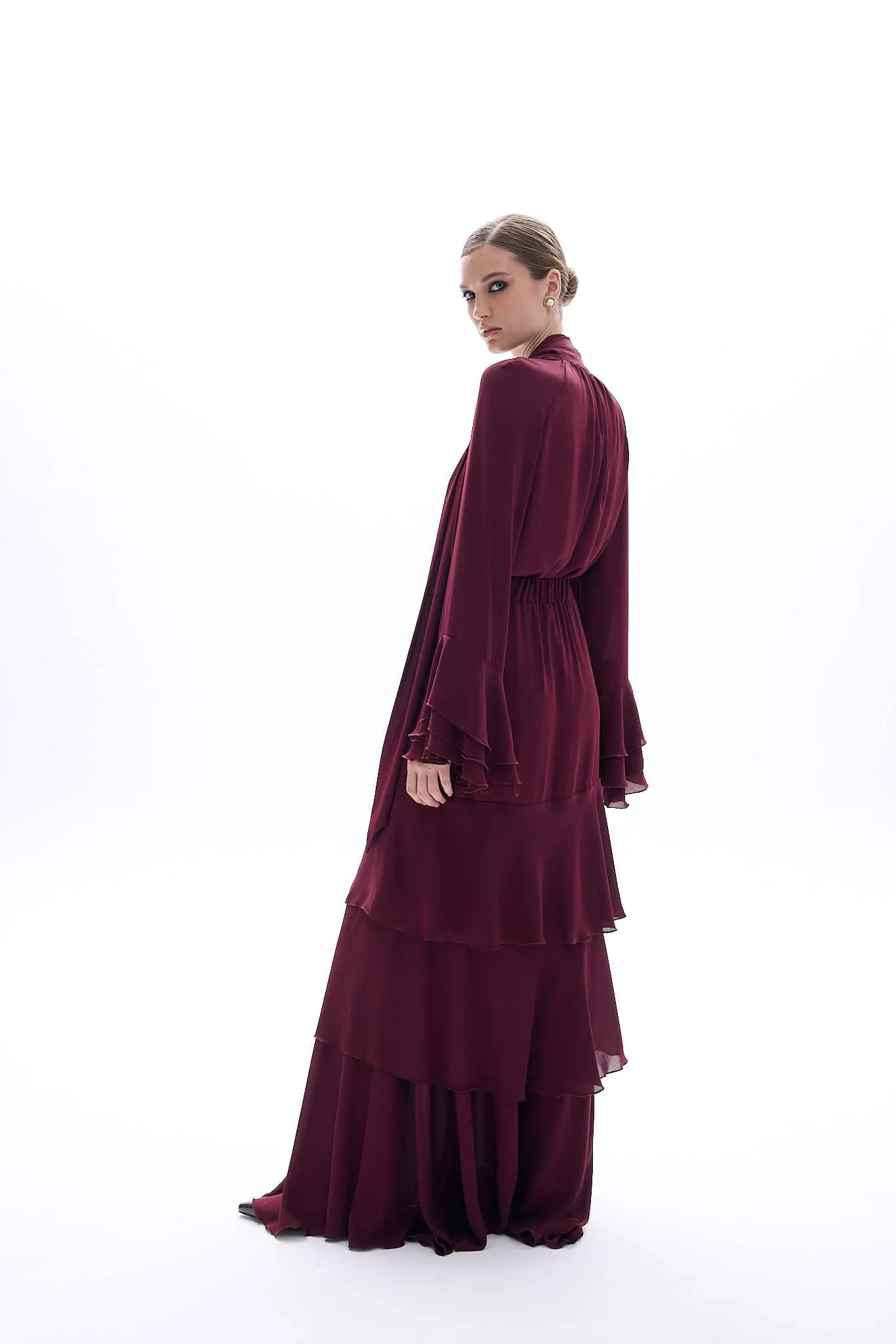 Αέρινη μπορντό φούστα με ελαφριά, φυσική κίνηση και refined αισθητική. Η βαθιά μπορντό απόχρωση και η πολυεπίπεδη, αέρινη γραμμή της δημιουργούν απαλή κίνηση και κομψό όγκο, φωτίζοντας διακριτικά κάθε εμφάνιση. Σχεδιασμένη να αγκαλιάζει ψηλά τη μέση για επιμηκυνμένη σιλουέτα, ταιριάζει εξίσου όμορφα σε καθημερινές όσο και σε πιο ιδιαίτερες εμφανίσεις. Το κρυφό πλαϊνό φερμουάρ ολοκληρώνει το κομψό φινίρισμα, προσφέροντας μια εκλεπτυσμένη πρόταση refined πολυτέλειας. Ιδανική για elegant looks.