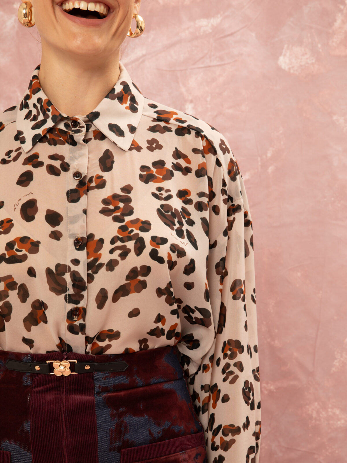 Το Oversized Chiffon Shirt σε leopard print είναι ένα αέρινο, ημιδιάφανο πουκάμισο που προσθέτει ιδιαίτερο χαρακτήρα σε κάθε εμφάνιση. Κατασκευασμένο από μουσελίνα με μεταξένιο φινίρισμα, προσφέρει κομψή κίνηση και ανάλαφρη αίσθηση, ενώ η χαλαρή γραμμή του το καθιστά ιδανικό για all-day styling.