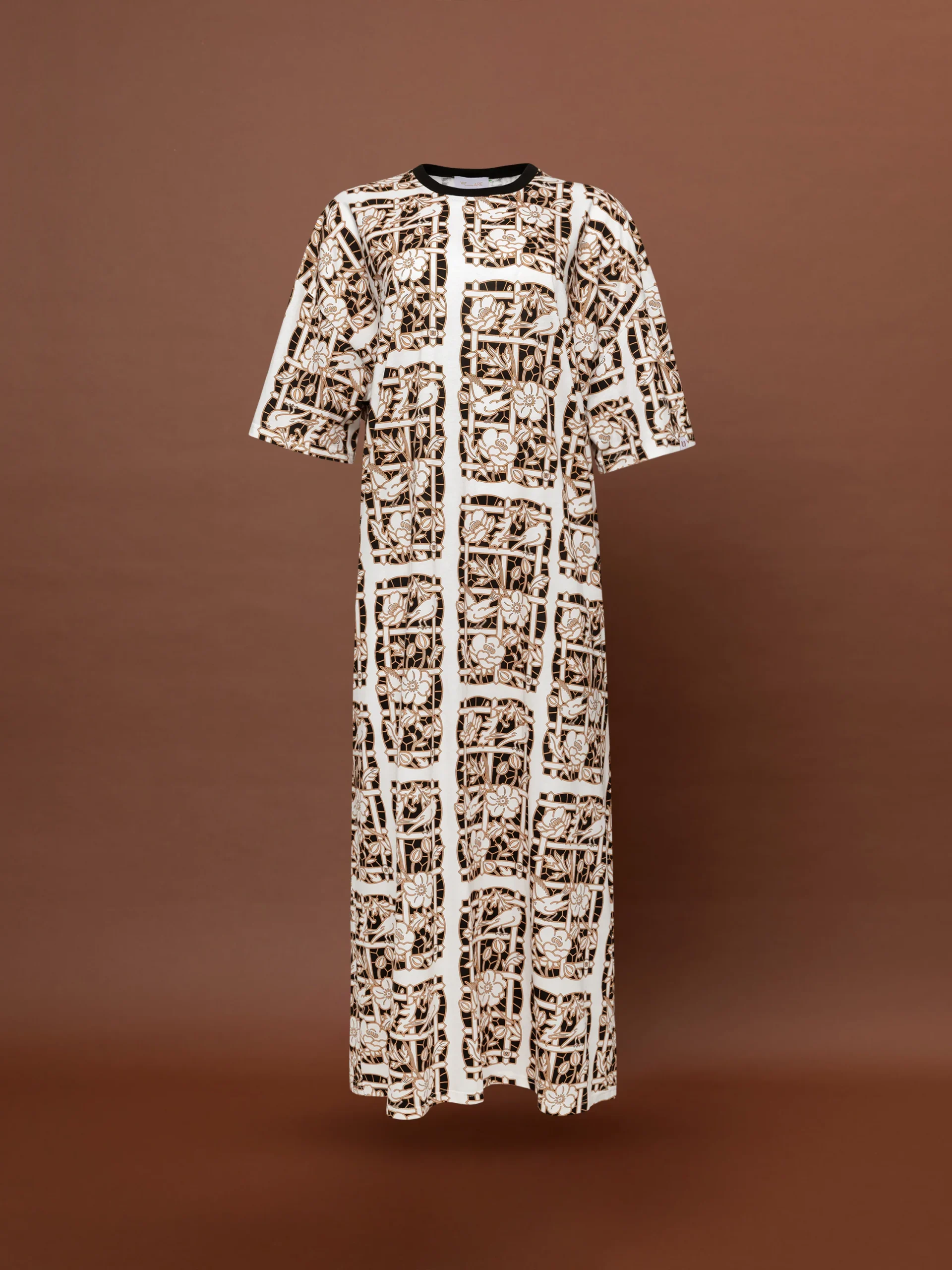 Το Oversized Maxi T-Shirt Dress Semedaki από τη We Are αποτυπώνει ένα πιο graphic, διακοσμητικό print μέσα από μια relaxed, statement σιλουέτα. Το μοτίβο εμπνέεται από παραδοσιακά στοιχεία σε σύγχρονη απόδοση, δημιουργώντας ένα κομμάτι με έντονη ταυτότητα και ιδιαίτερο χαρακτήρα. Το ανάλαφρο βαμβακερό μακό προσφέρει φυσική κίνηση, ενώ η oversized γραμμή εξασφαλίζει άνεση και effortless εφαρμογή σε κάθε στιγμή της ημέρας.