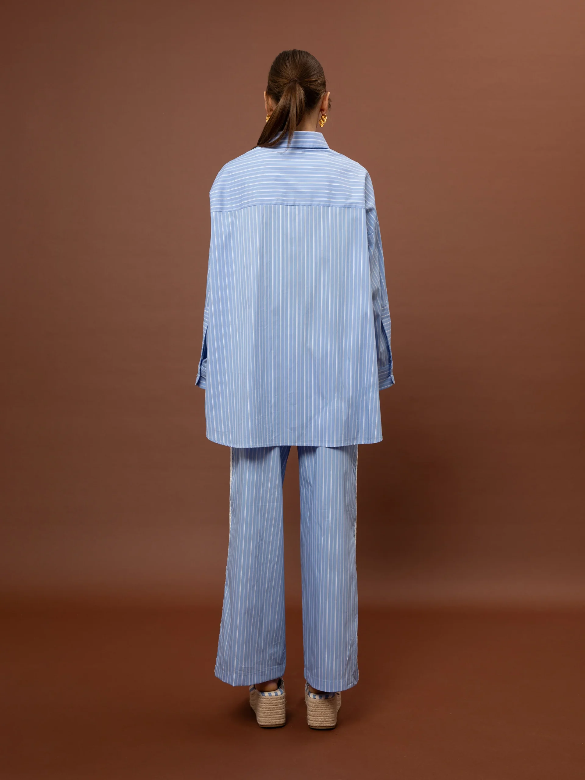 • Oversized ριγέ πουκάμισο σε ανοιχτό μπλε τόνο