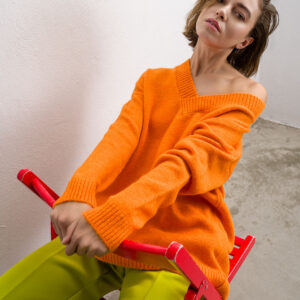 Πουλόβερ oversized, με ψηλό λαιμό, one size.