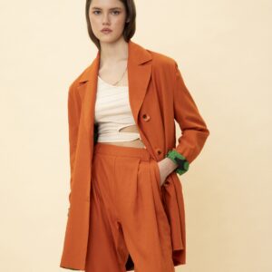 Linen look pleated pants – orange