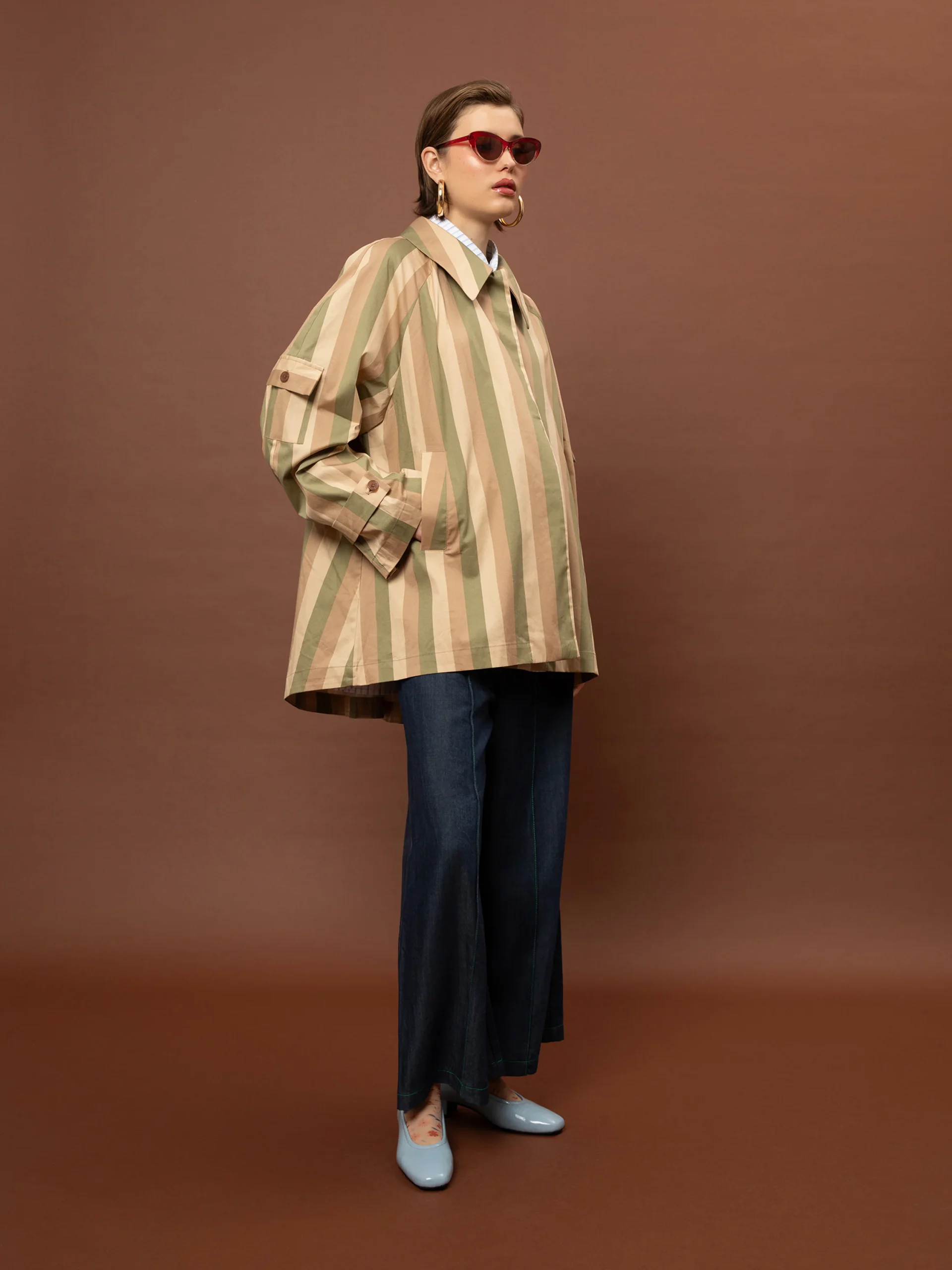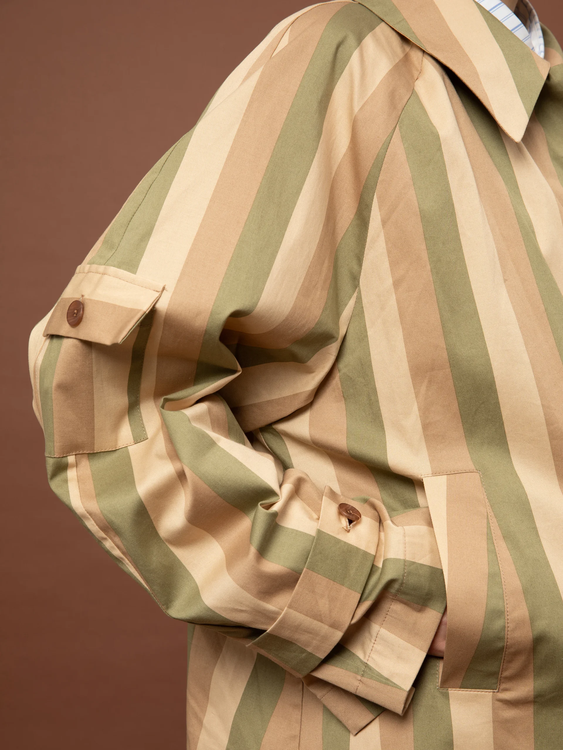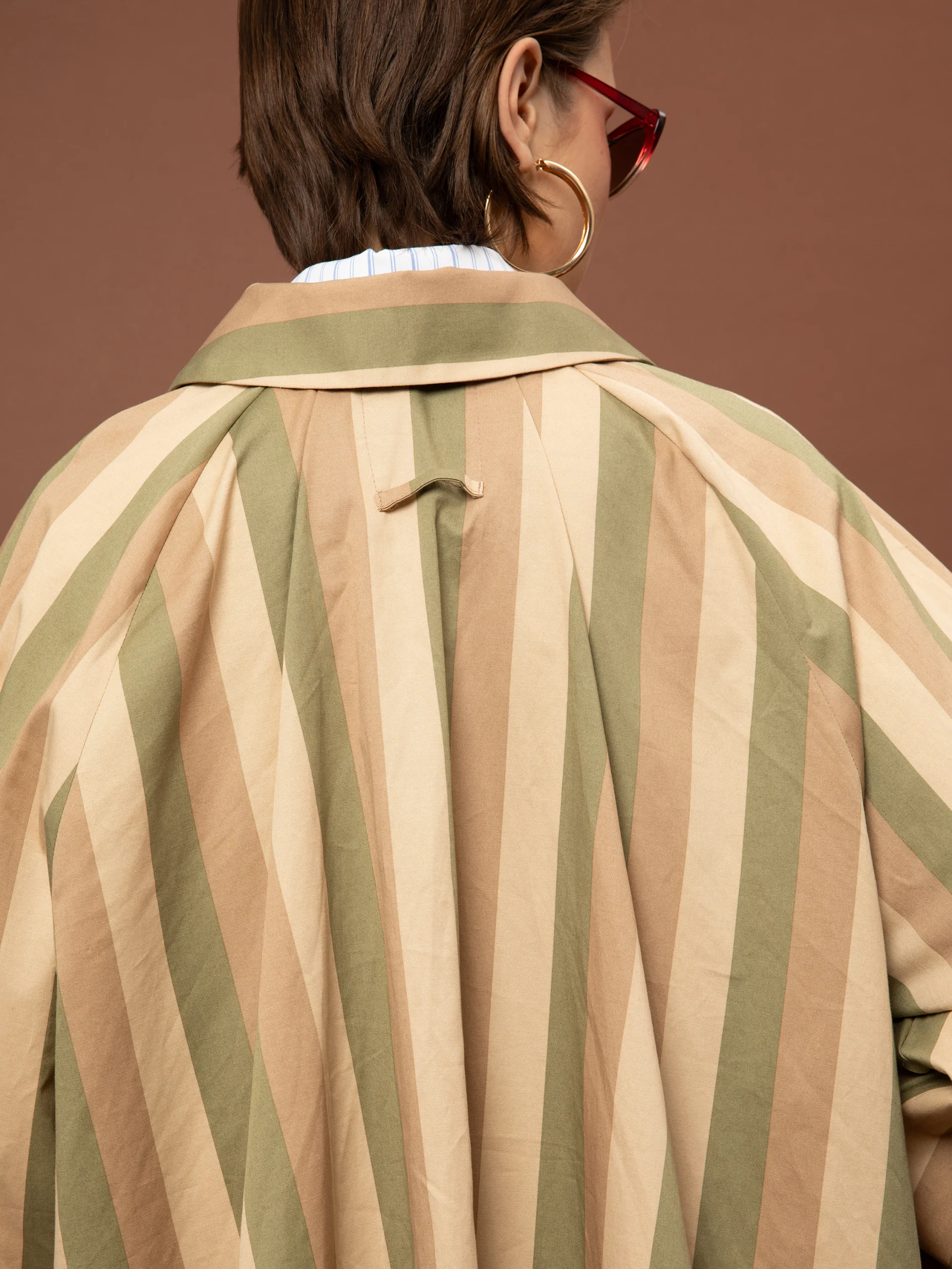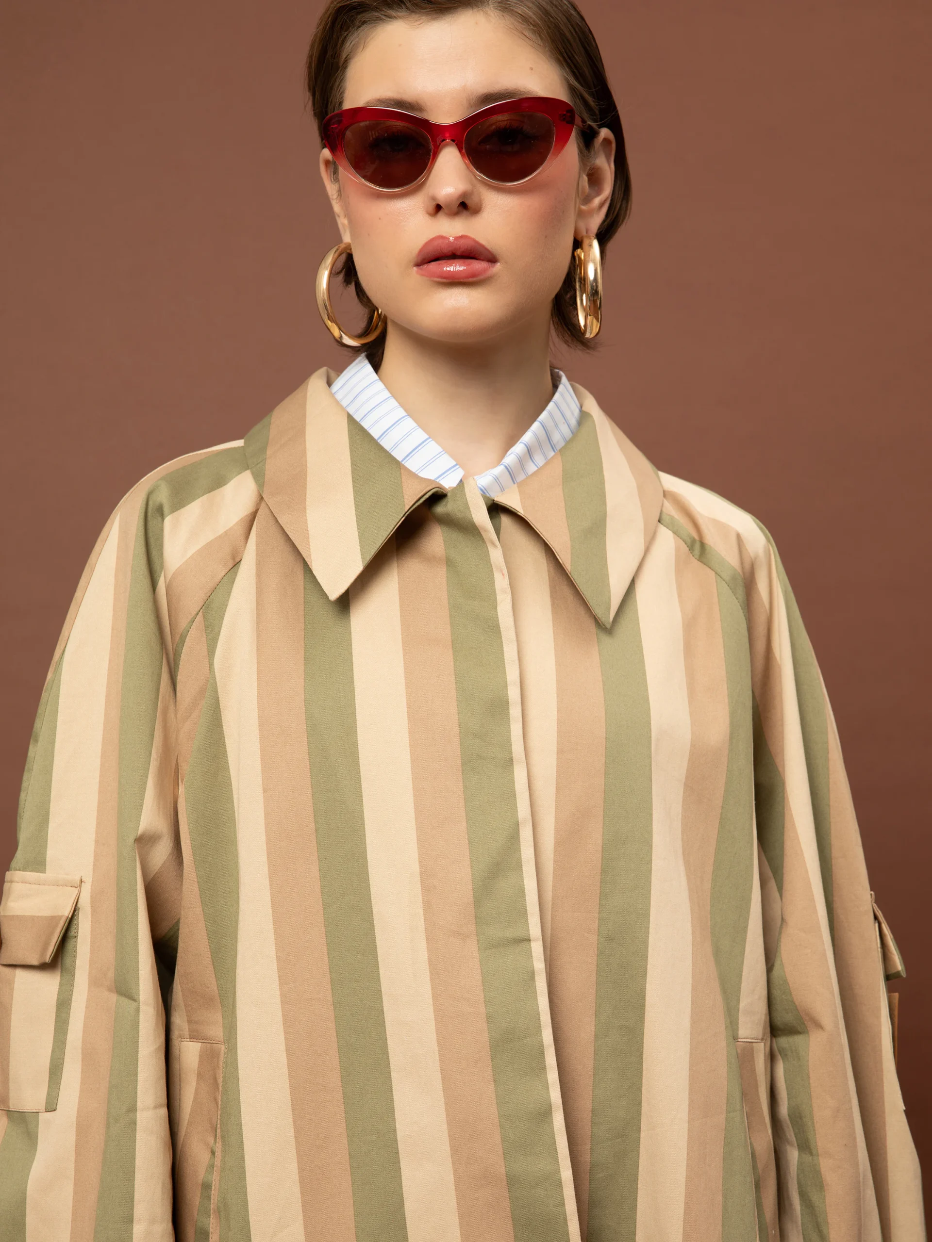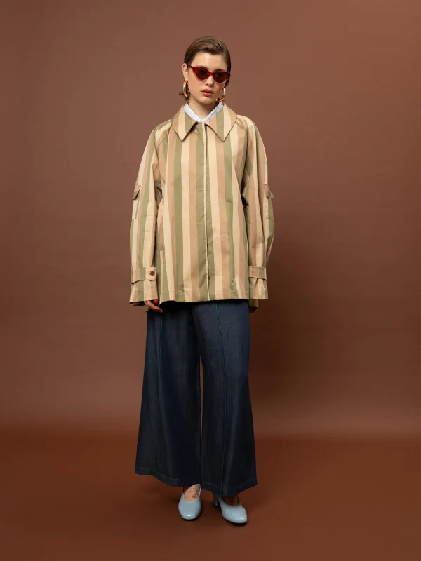 Το Short Trench Coat Stripes Olive της We Are είναι μια κοντή βαμβακερή ριγέ καμπαρντίνα με σύγχρονη γραμμή και διαχρονικό χαρακτήρα, ιδανική για layering σε καθημερινά και κομψά looks.