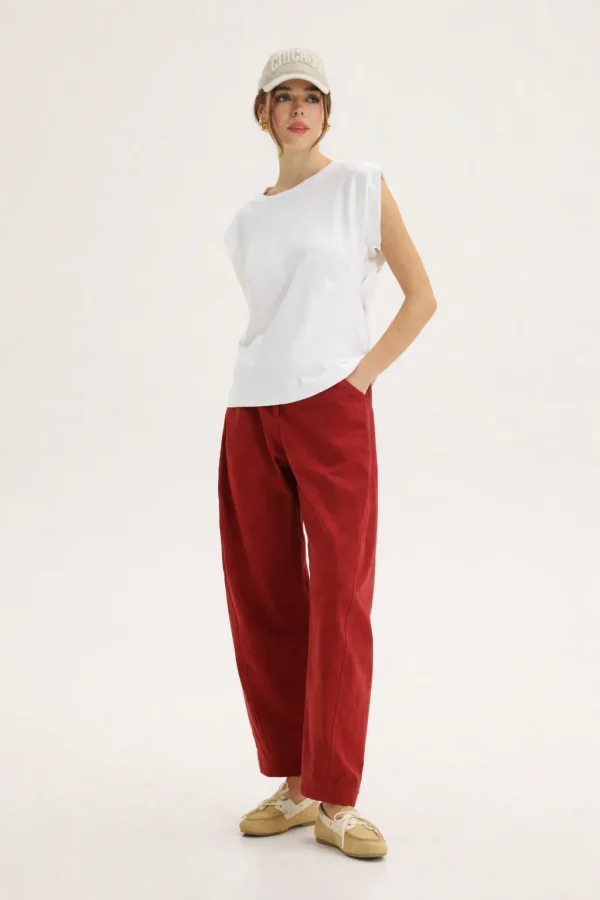 Το Sienna Pants της Innocent είναι ένα κομψό παντελόνι σε chili απόχρωση που συνδυάζει minimal αισθητική με καθαρές γραμμές. Η σύγχρονη γραμμή και η άνετη εφαρμογή δημιουργούν μια ισορροπημένη σιλουέτα που φοριέται εύκολα από το πρωί έως το βράδυ. Το φυσικό ύφασμα με lyocell και βαμβάκι προσφέρει απαλή υφή και άνεση, καθιστώντας το ιδανικό για κομψές αλλά και relaxed εμφανίσεις.