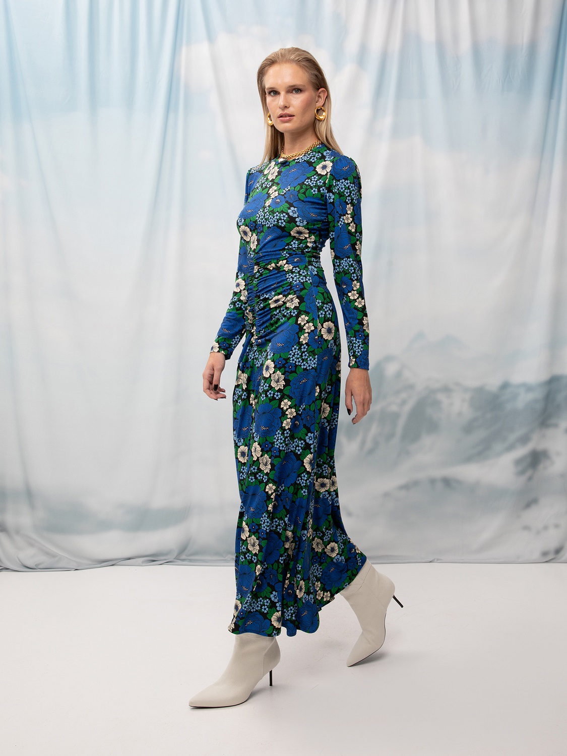 Jersey maxi φόρεμα, με λουλούδια, S/M, M/L.