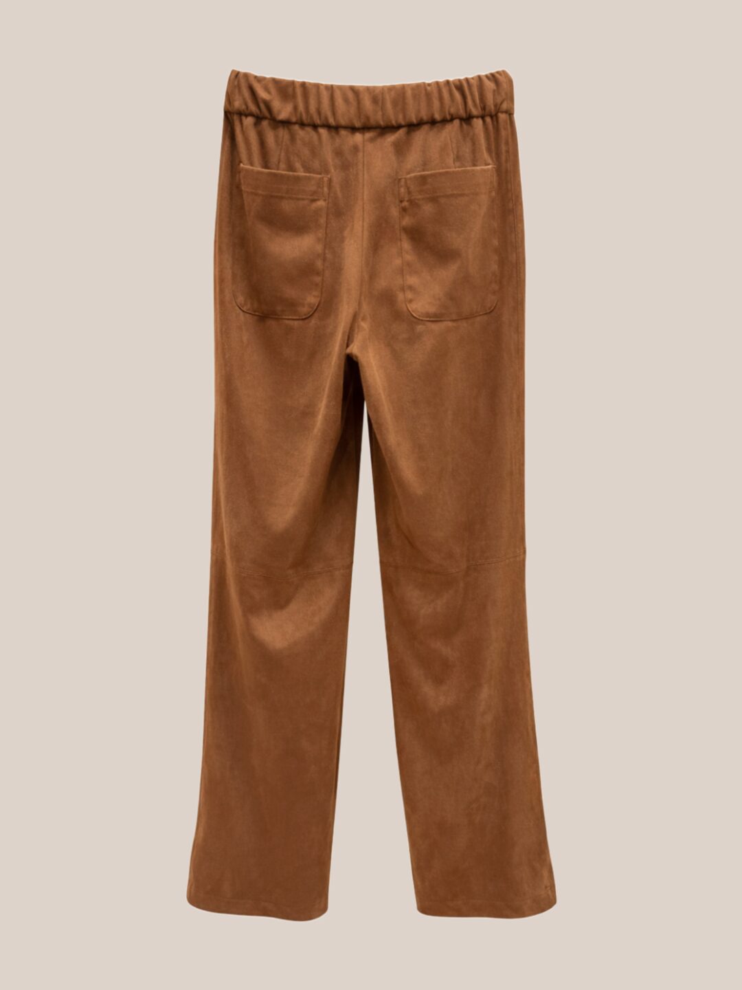 Suede παντελόνι σε ζεστή απόχρωση Tabac με άνετη, ίσια γραμμή. Διαθέτει ελαστική μέση για άνεση, καθαρές ραφές και minimal αισθητική που το καθιστά ιδανικό για καθημερινά αλλά και πιο προσεγμένα looks. Ένα διαχρονικό κομμάτι που φοριέται εύκολα από το πρωί έως το βράδυ.
