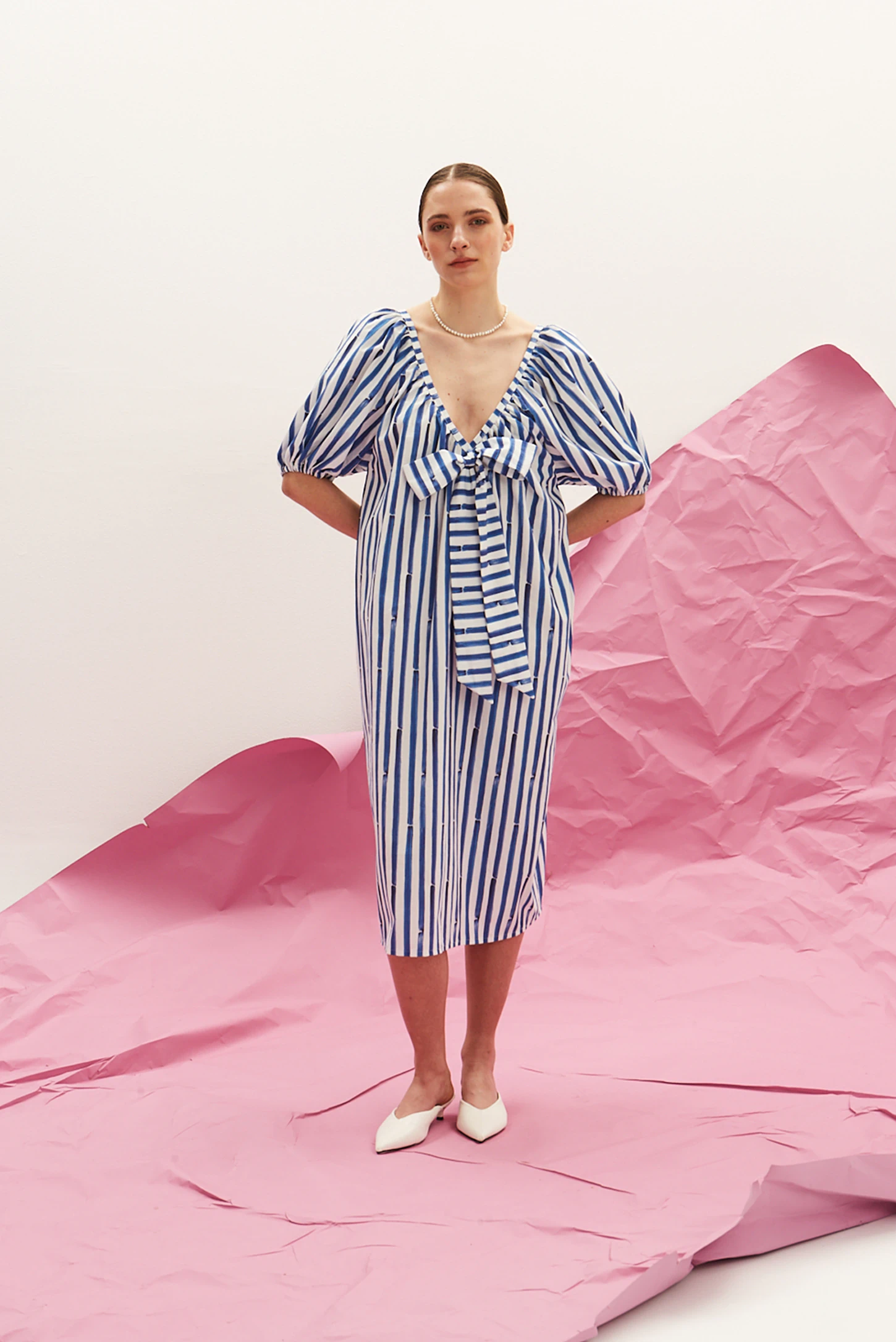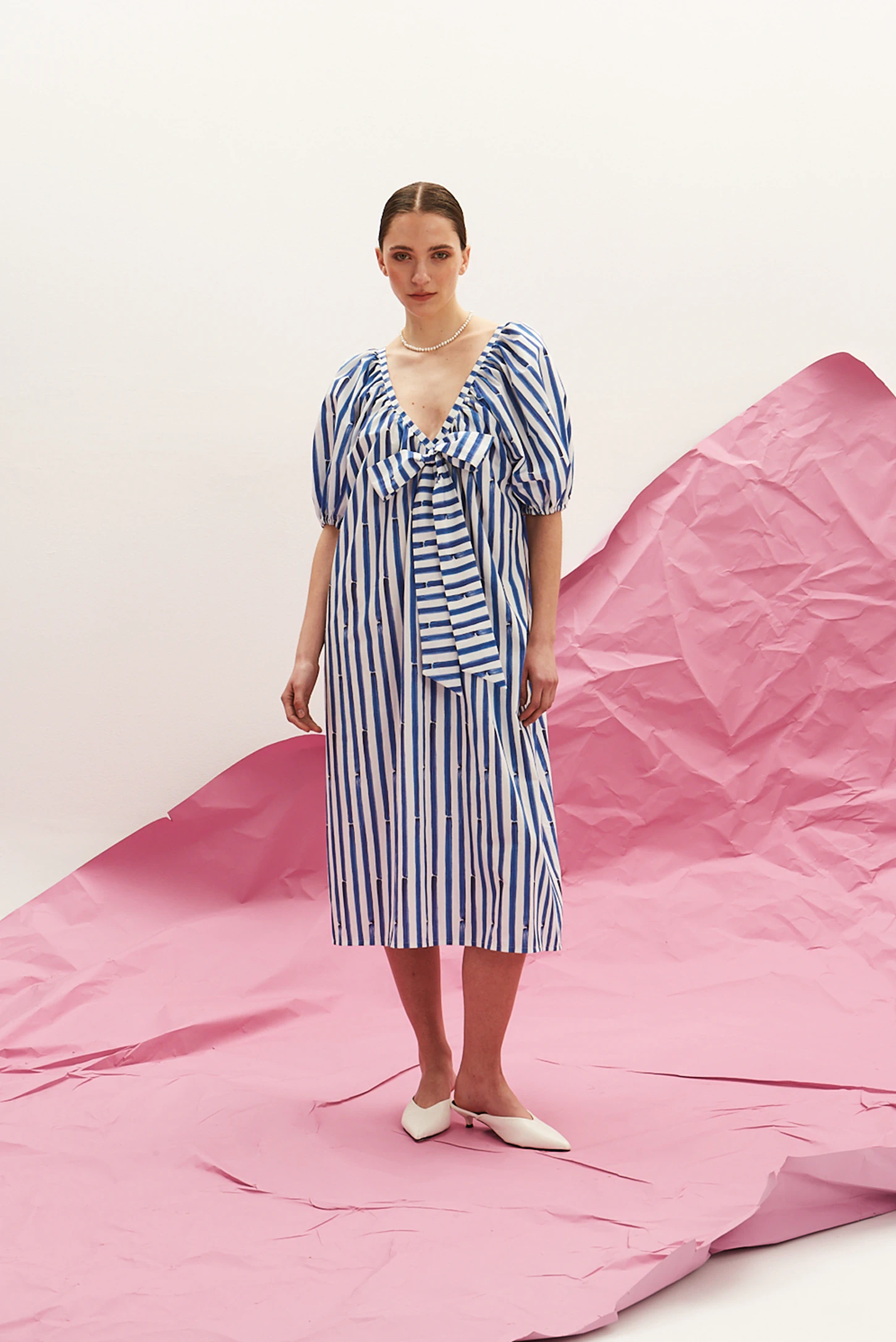 Το The Bow Dress – Raya της The Norm είναι ένα statement κομμάτι που ισορροπεί ανάμεσα στο χειροποίητο χαρακτήρα και τη σύγχρονη αισθητική. Το αποκλειστικό, hand-painted ριγέ μοτίβο δίνει στο φόρεμα μια καλλιτεχνική διάσταση, ενώ η τοποθέτηση του print κάνει κάθε κομμάτι μοναδικό.