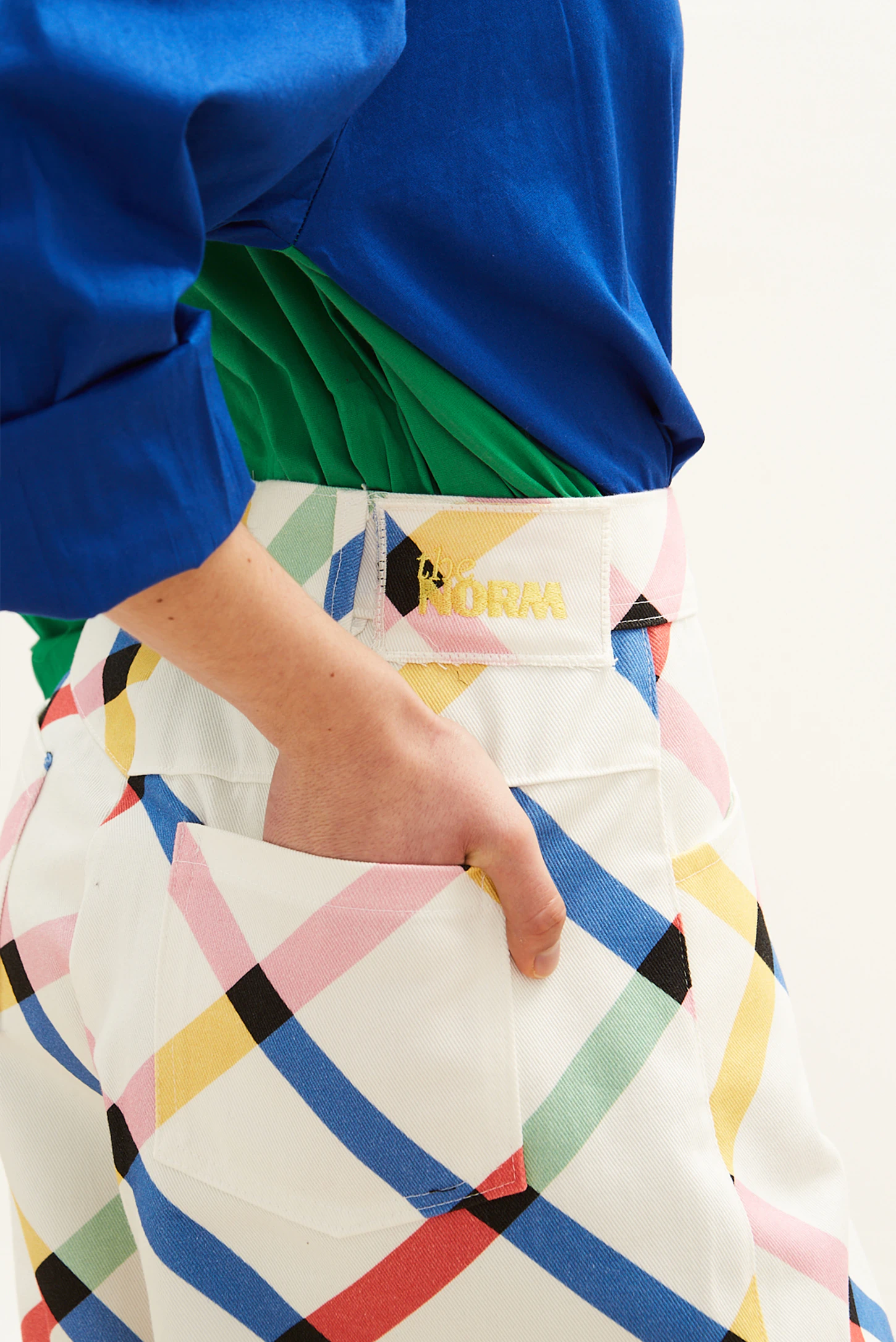 Το The Denim Shorts – Iris της The Norm μεταφέρει τη χαρακτηριστική γραφιστική ταυτότητα του brand σε ένα πιο καλοκαιρινό, ευέλικτο κομμάτι. Το πολύχρωμο geometric μοτίβο δημιουργεί ένταση και κίνηση, μετατρέποντας ένα everyday short σε statement piece.