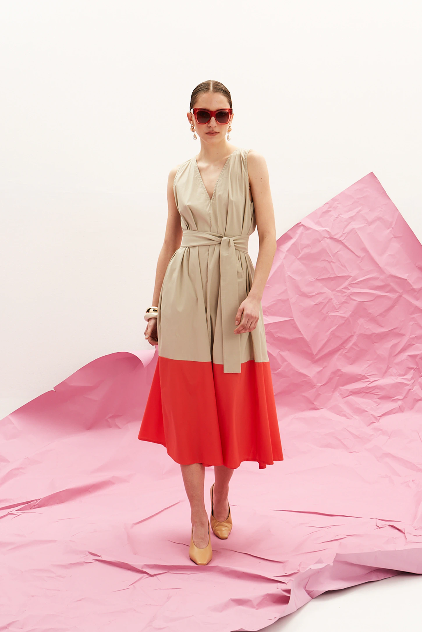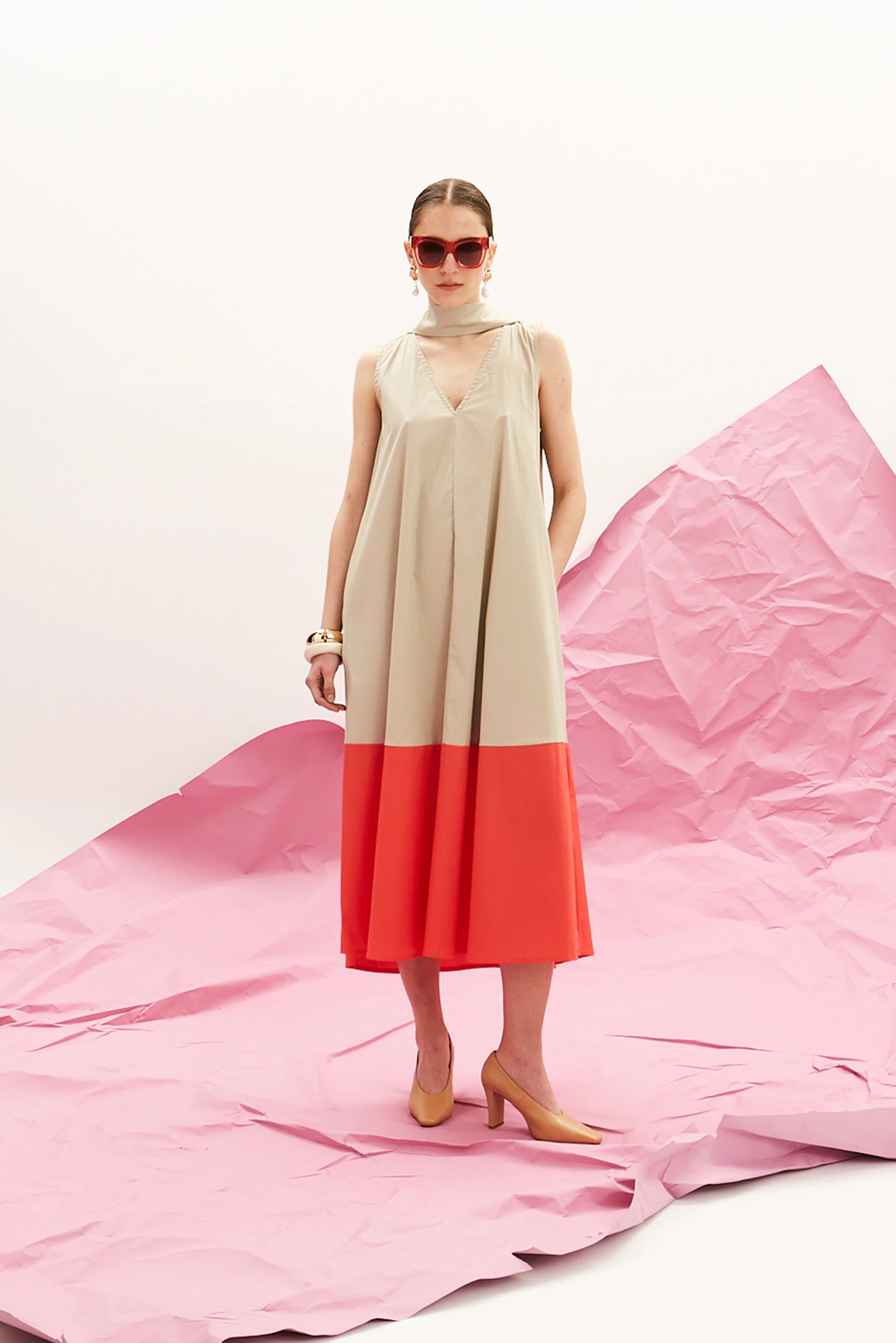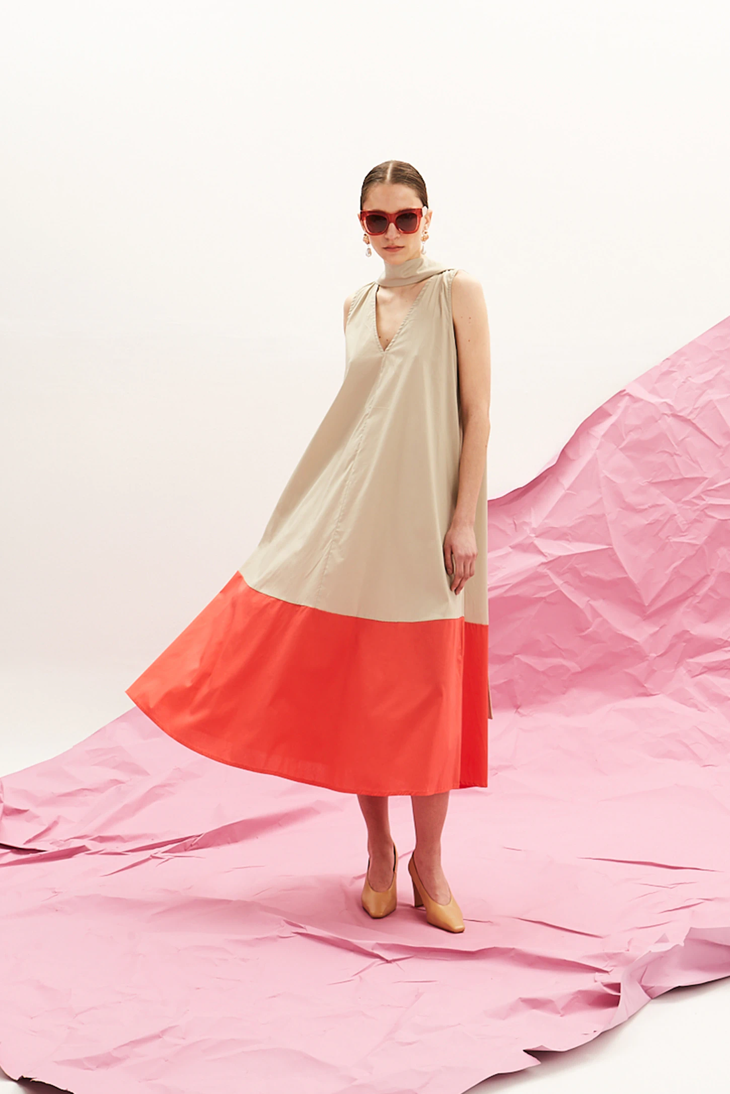 Το The Long V Dress (Sand & Coral) της The Norm αποτελεί μια σύγχρονη προσέγγιση στην έντονη χρωματική αντίθεση. Σχεδιασμένο για εντυπωσιακή παρουσία με απόλυτη ευκολία, συνδυάζει αρχιτεκτονική γραμμή με αέρινη κίνηση.